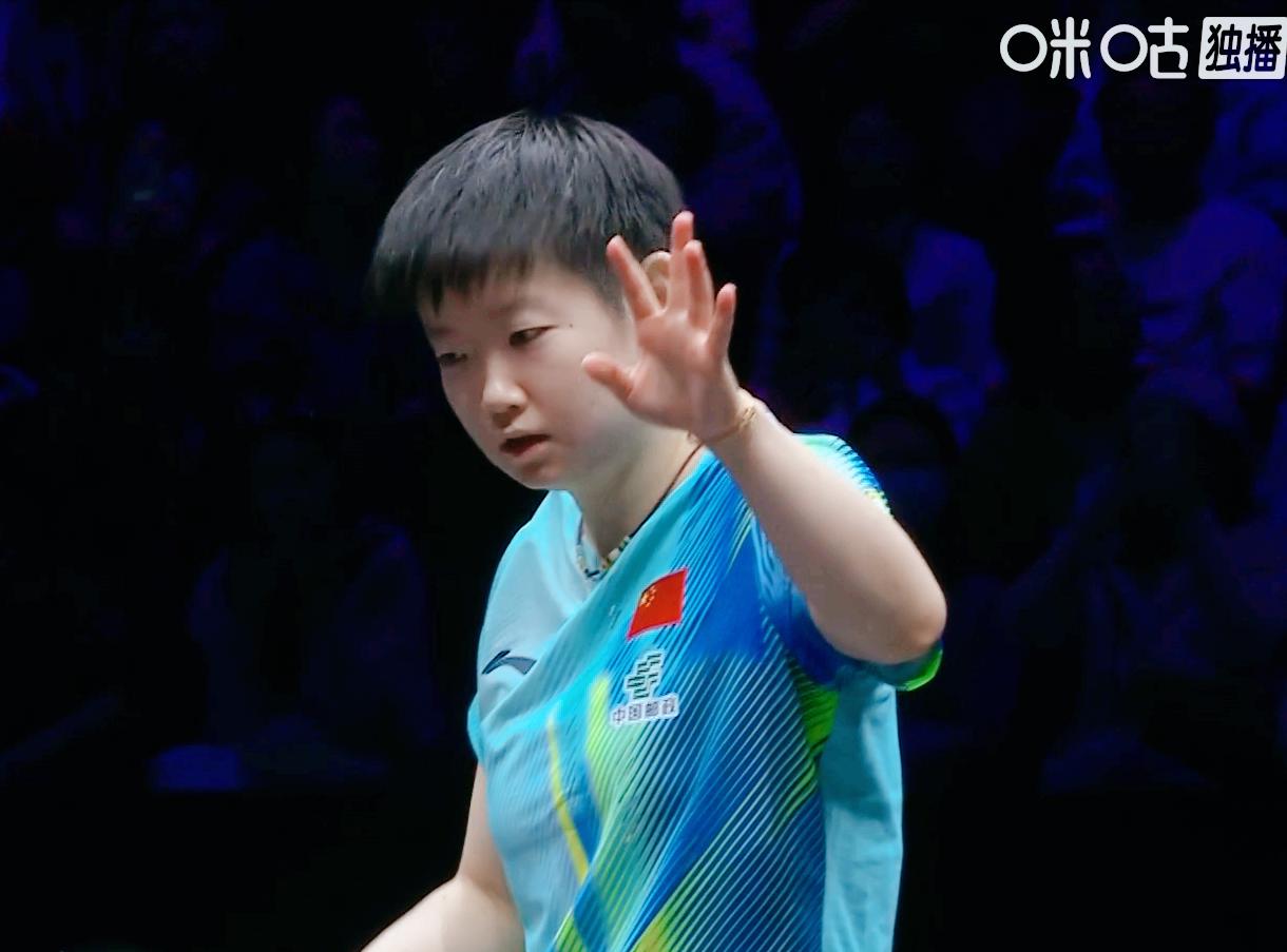 孙颖莎终于出手阻止,现场乱喊加油的观众了! 第一局 孙颖莎11;5拿下。 第二局 孙颖莎5:0开局, 朱芊曦追到了6:7, 现场山呼海啸的给孙颖莎加油! 看出已经打扰到孙颖莎了, 她抬了抬手, 示意你们别喊了! 其实无论谁发球? 都不能喊加油, 因为此时孙颖莎在想战术, 你们喊加油, 还那么大声, 不是帮她, 是打扰她思路。