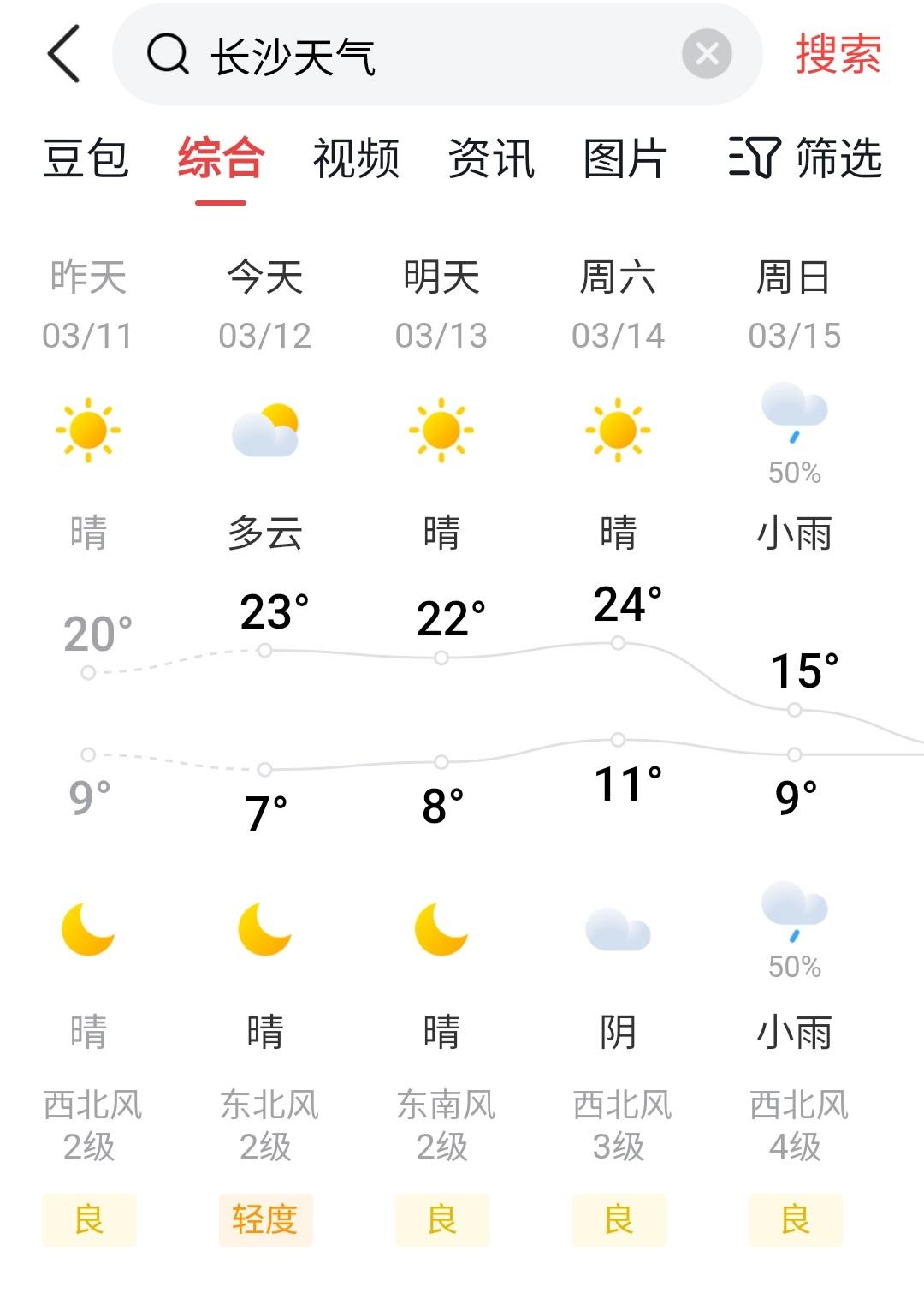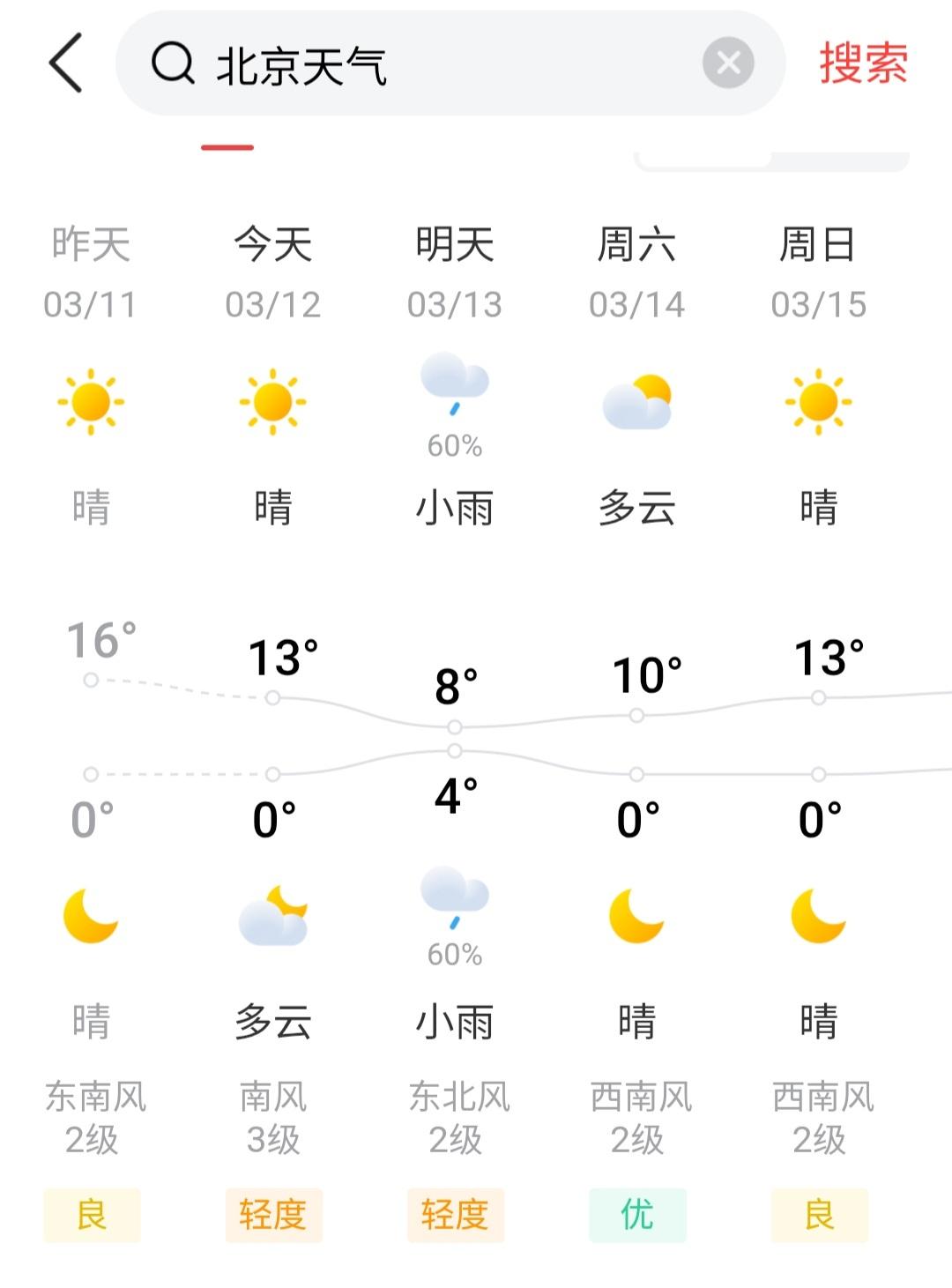 北京今天3月12日。轻度雾霾。照片也不见远山。另附上海、长沙空气质量预报。见图。