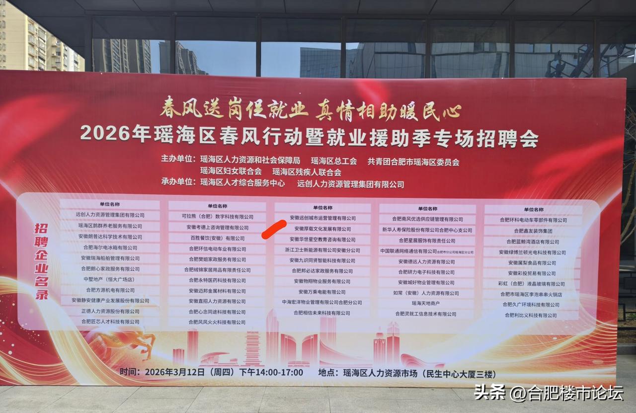 3月12号下午合肥瑶海区的专场招聘会。 公司是不少,但是这个含金量就要差不少了。