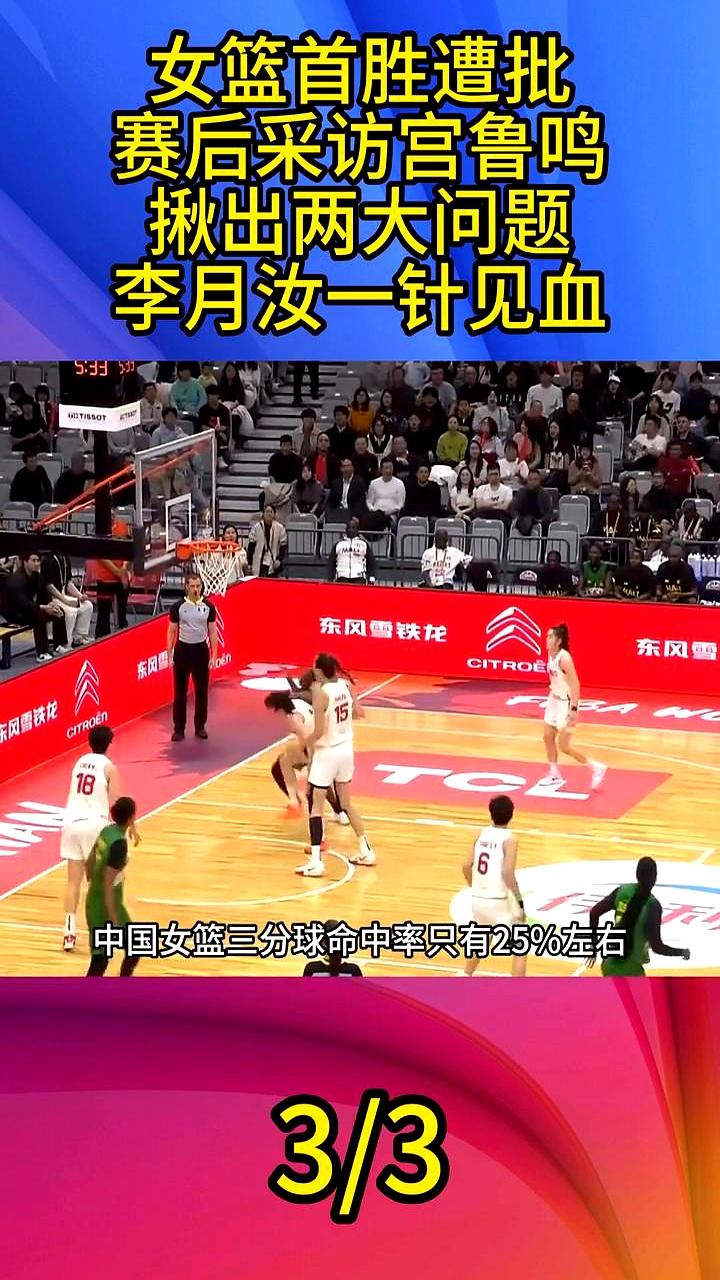 赢了13分还被球迷追着骂,中国女篮这世界杯资格赛首胜,拿得比输球还憋屈。 你敢信世界排名第五的我们,打第二十一的马里,上半场只领先6分。全场三分28投中7,罚球14中8,前场篮板还少对手4个,李月汝替补20分钟砍21分11板拿全场最佳,都救不回开场的稀碎状态。 宫鲁鸣赛后直接说队员思想放不开,对抗太软。李月汝也承认刚归队磨合差,空篮都能丢。 赢球不捂短,输分不甩锅,把问题摊开了改,才是冲世界冠军的底气。