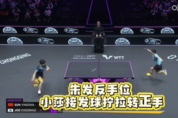 孙颖莎自己喊暂停,暂停时间非常聪明,马琳给出战术,莎莎坚决执行。 重庆冠军赛,