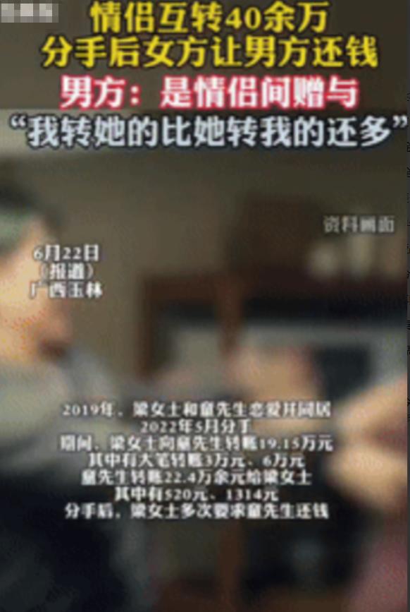 “白嫖成功了?”广西玉林,一情侣恋爱后同居,期间女子向男子转账19.15万元,男子给女子转了22.4万余元,不料,两人分手后,女子多次要求男子还钱,可男子认定是情侣间的赠与,他转的钱更多,气的女子直接把男子告上法庭。 整件事明着看就是女方打了十九万多,男方转了二十二万多,看起来是男生还赚了点。 可说到底,这账到底怎么算?谁欠谁?满打满算,法院真不会直接“清了账”就完事。 这里头的门道,比单纯凑数字要复杂得多,背后的法律逻辑和情感边界,也让人直呼现代人恋爱真烧脑。 这个案子,表面看是两个人“你来我往”,可深扒一下,这“十九万一千五”里边,有部分是男方说“快,我信用卡快逾期了,借我一笔,不然影响征信”,让女方立马打了钱。 有几万是同居期间,添置家电家具,本来是两个人一起用的,结果女方全包。 更有一些,成了男生朋友聚会、人情场合上的临时垫付,谁能想到最后这都成了调解庭上的争议焦点。 关键是,女方转账时还标上了“借你应急”“家具付款”这类备注,加上转账和微信聊天可都留着痕迹,这些直接成了女方的“护身符”,后来证明自己是“应急借款”,压根不是爱心赠与。 有意思的是,男方的心理变化,细看起来也特别具现实意味。 刚开始,刚借钱时还“客客气气”,每一笔都说分明,甚至说“放心,这钱算我借你的,两天还你”。 人都这样,一旦感情推进,心里踏实了,就默认对方的付出是理所当然。 日子越过越久,这还出现了情感绑架,仗着“咱俩是一家人”开始对女生的垫付视而不见,到了分手了,直接搬出“我还给你转了二十多万,你倒贴我也不少”当挡箭牌,妥妥现实版的“感情总额理论”。 再看这案子里的“证据链”,不少人估计要说,谈恋爱还要存聊天记录和支付截图,这会不会太冷酷? 但事实上,身处中国这个讲人情的社会,明面上笑呵呵,闹到分手,反倒是条条框框最能保护人。 这个案件中,玉林的男生一心想用“总和掩盖细节”,可法院才不惯着,最后让他还了六万多。 这判决怎么来的?像520、1314这种带有特殊情感标记的钱,情人节红包、生日祝福一类,法院直接认定是“表达爱意”,属于无条件赠与。 可女方打的那批大额、带备注的转账,还有那些有凭证能查得到用途的钱,只要备注上写了用途或有聊天证据,法院从头到尾当作借款或垫付,只要分手,男方都得掏出来还。 不少法律人士也提过,恋爱中的大额转账,只要超出了平常的小钱小事,又不是固定节日送礼,关键时刻都按“结婚目的未达成”来算,没结成婚,钱就是得还。 其实大家嘴上都说恋爱自由,可真碰上钱的事,没人能真的洒脱。 一边想“有来有往”,一边又怕被说成小心眼。 现实却是,越早定规矩,越少尴尬。出了问题也能让人服气。 而今社会变化太快,人们习惯了快节奏,感情也高频切换,金钱关系却越来越被年轻人当回事了。 其实现在的年轻人早就明白,大额转账、名义借款、节日红包,性质都不一样,下次真遇到争议,保准不会蒙圈。 信息来源:玉林一对情侣互相转账40万元,哪些不算恋爱赠与?法院判了——2025-06-23 07:53·光明网