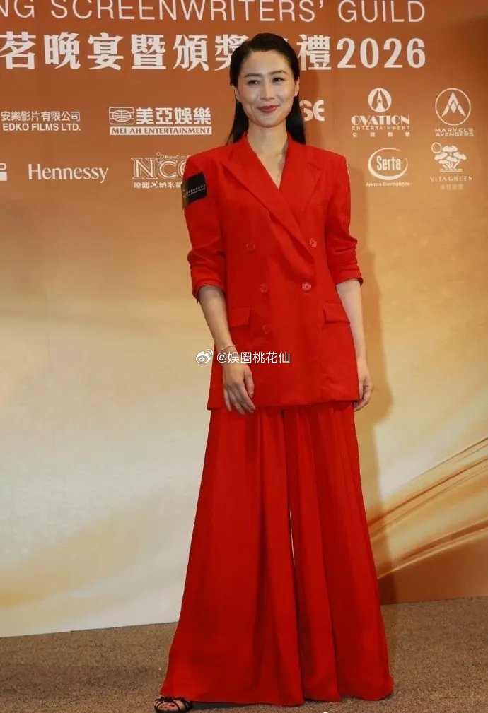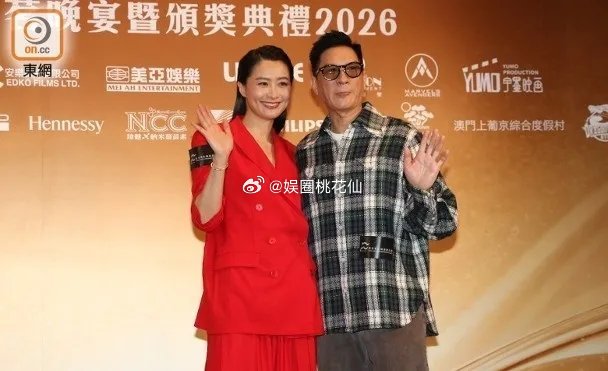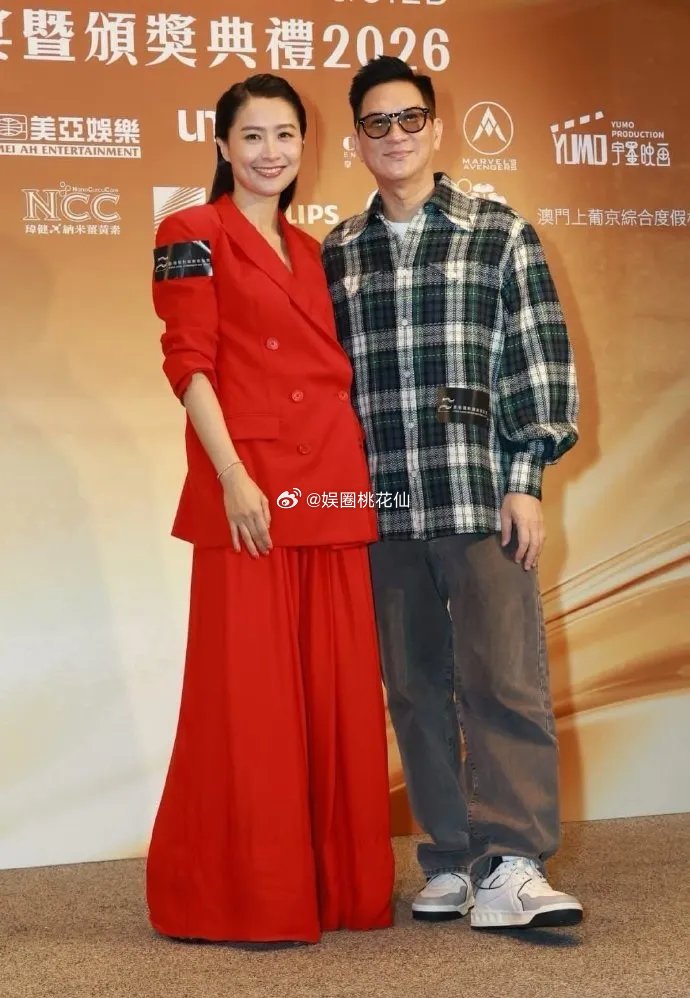张家辉和陈法拉一起出席颁奖典礼,两位站在一起还显得很般配,也都很有潮流时尚感。