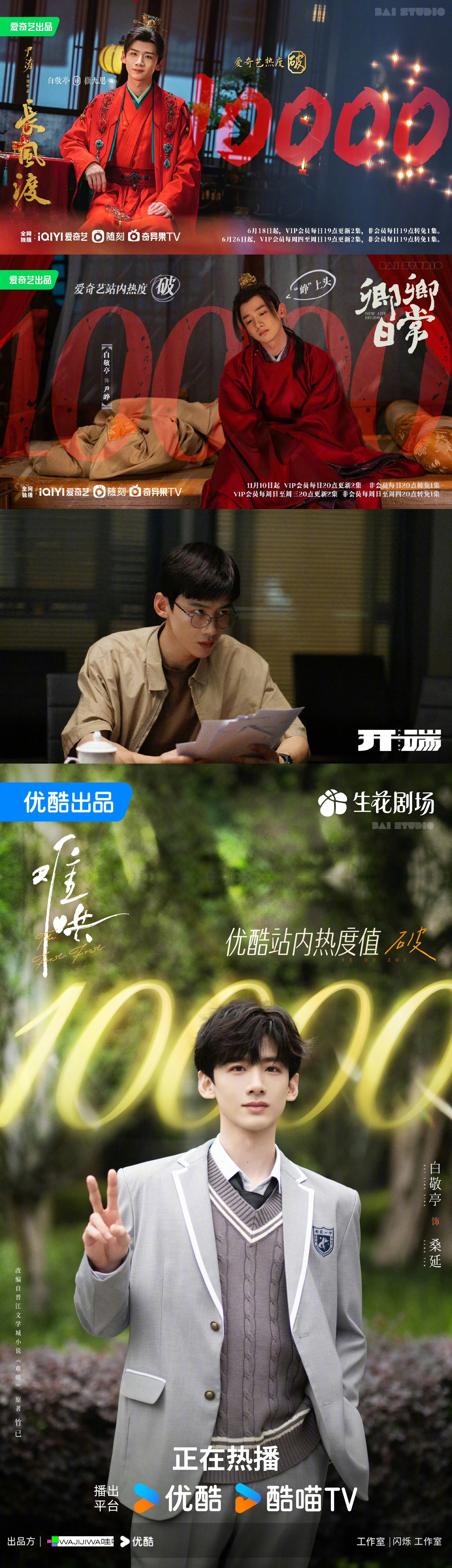 🐧🥝👖三平台热度都破万的男主,目前是不是就他们三个?白敬亭、刘宇宁、张凌赫大家体感是这样吗🤔