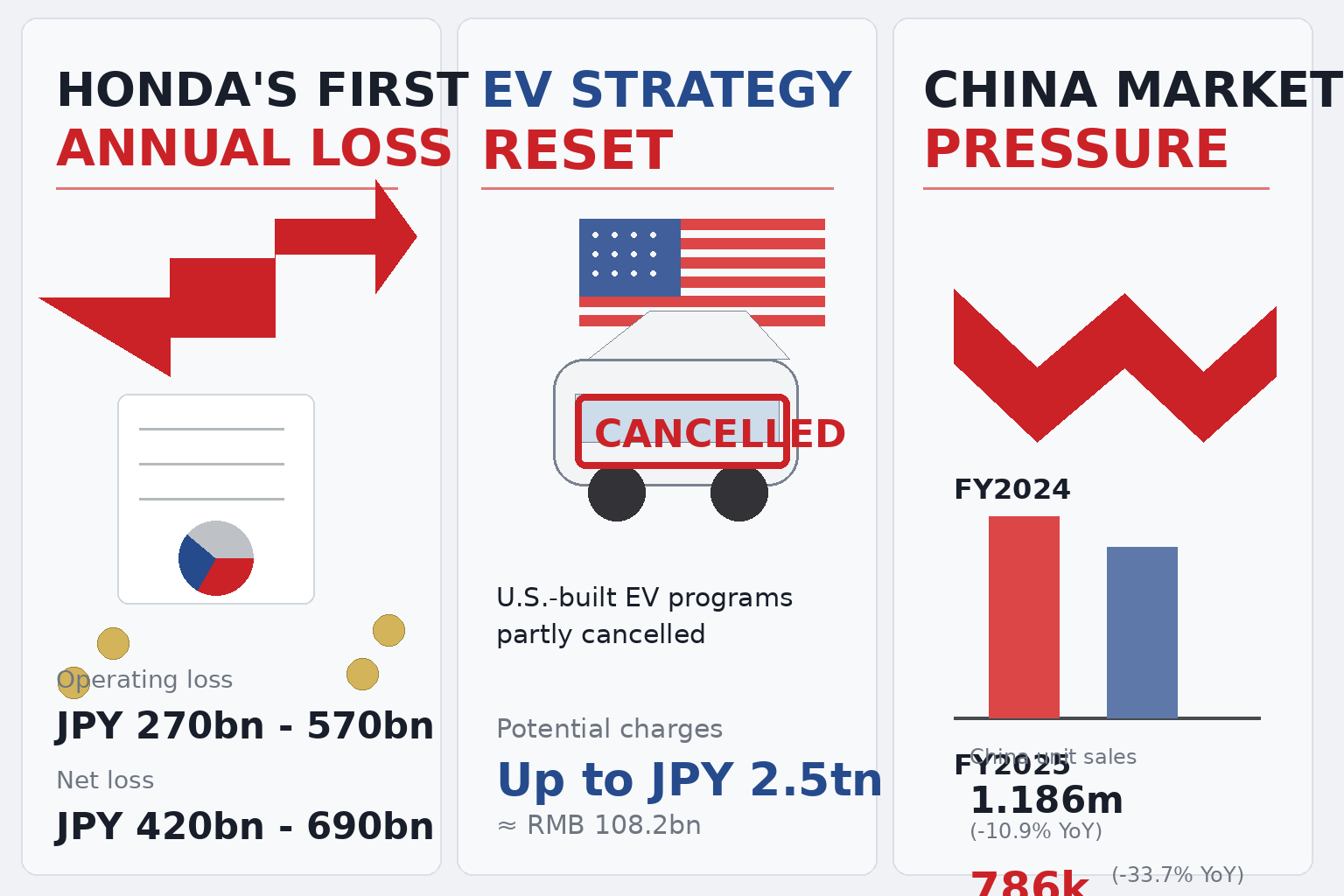 所以这份财报,最该读的不是“亏了多少”,而是为什么会从盈利预测,翻到亏损预测。核心原因不是卖车突然崩盘,而是战略重估。路透和英国《金融时报》都提到,本田取消了部分原定面向北美的电动车项目,重新审视在美国市场的EV节奏,并把重心往混动倾斜;这意味着,之前投进去的研发、产能、项目准备,有一部分要减值、有一部分要重组,财务上就会集中体现为巨额损失。