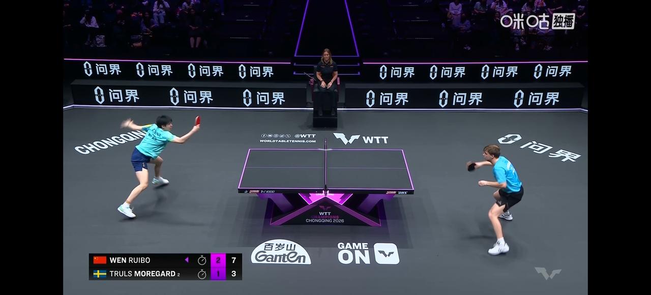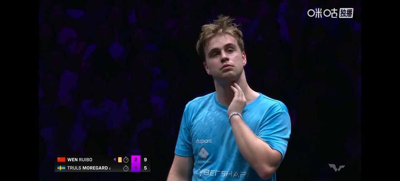 刚刚结束了一场WTT重庆冠军赛男单1/8决赛较量,国乒19岁小将温瑞博,发挥出色,张先失一局的不利情况下,连扳3局,3-1击败巴黎奥运会男单亚军、世界排名第2的瑞典名将莫雷加德,晋级男单八强。 比分:8-11,12-10,11-7,11-9。 温瑞博1/4决赛静候梁靖崑和邱党之间的胜者。