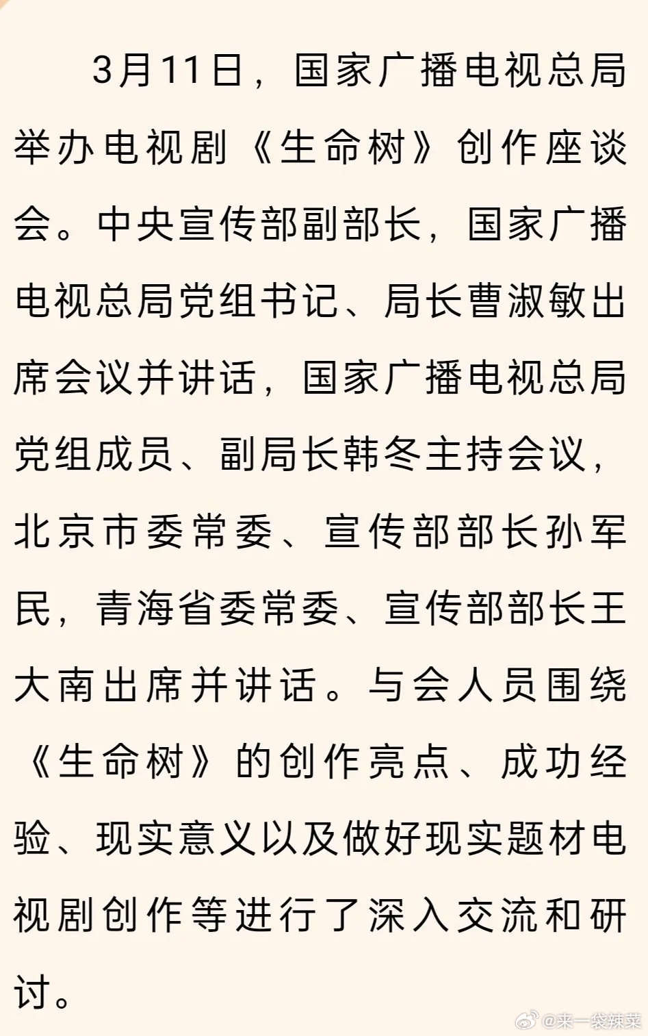 《生命树》召开座谈会,杨紫因为行程冲突未出席,同样规格的研讨会近年来只有4部,🐮的