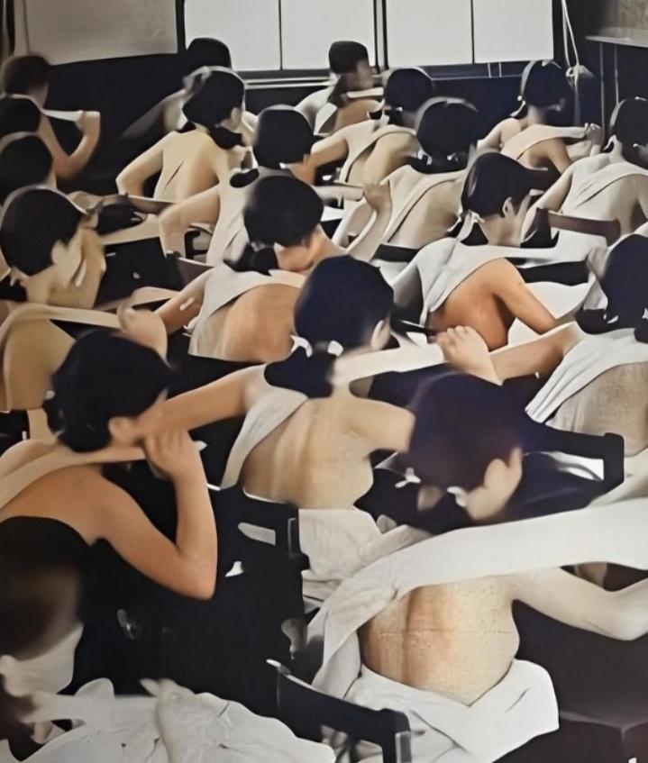 1938年,日本国内,高中生上课一丝不挂地接受军国主义的熏陶时,留下的老照片,镜头中的他们赤身裸体,毫无羞耻感。 1938年那会儿,正是日本对外侵略战争愈演愈烈的时候,国内的教育也早就被军国主义带偏了,完全变了味。 这一年,陆军中将荒木贞夫出任日本文部大臣,他不是来办教育的,而是来“整顿思想”的,提出所谓的“国民精神总动员”,把“忠君爱国”“为天皇献身”当成教育的核心,全面推行“皇国教育”,把学校变成了培养战争工具的“准军营”。 照片里的这些高中生,不管男生女生,都被逼着赤身裸体上课,但这不是什么奇怪的体育训练,而是军国主义教育的一种变态规训手段。 根据当时的记载,这种训练叫“干布摩擦”,表面上说是锻炼忍耐力,实际上呢,就是故意让青春期的孩子脱掉衣服、放下羞耻心,彻底磨掉他们的自我意识,让他们无条件服从国家和天皇的命令。 大家可能不知道,早在1937年,日本文部省就已经全面改了课程,把军事训练当成中学的必修课,到了1939年,九成以上的中学都有现役军官常驻,军事训练的课时占比都超过了四成。 这些高中生,本该在课堂上学习知识、追逐梦想,却被灌输着“侵略有理”“牺牲光荣”的歪理,连最基本的人格尊严都被剥夺。 他们赤身裸体地站在一起,听着老师宣扬“大和民族优越论”,还被教导要随时准备为“大东亚圣战”献身,甚至被鼓励放弃个人情感,把自己当成国家的“战争耗材”。 更令人痛心的是,这种训练还是强制的,哪怕是女生的生理期也不能请假,而长期的洗脑,让他们真的失去了羞耻感,反而觉得这种被奴役的状态,就是“爱国”。 而这张老照片,并不是个例,只是当时日本军国主义教育的一个缩影罢了。 那时候,日本的教材被改得面目全非,侵略被说成是“自卫”,屠杀被美化成“战果”,就连小学生都要写作文歌颂战争、崇拜军队,这些高中生,就是在这样的环境里,一步步被扭曲了价值观,最终沦为了军国主义的牺牲品。 如今再看这张照片,只剩无尽的唏嘘和惋惜,这些正值青春的少年,本该在课堂上收获知识、慢慢成长,却被极端的军国主义思想剥夺了尊严和良知,沦为被操控的战争工具,这背后,全是日本军国主义对教育的扭曲和对人性的践踏。 铭记这段黑暗的历史,不是为了延续仇恨,而是为了警醒我们:教育的本质是育人,而非制造工具,唯有坚守和平、坚守人性,才能避免这样的悲剧重演,守护好每一份青春和良知。