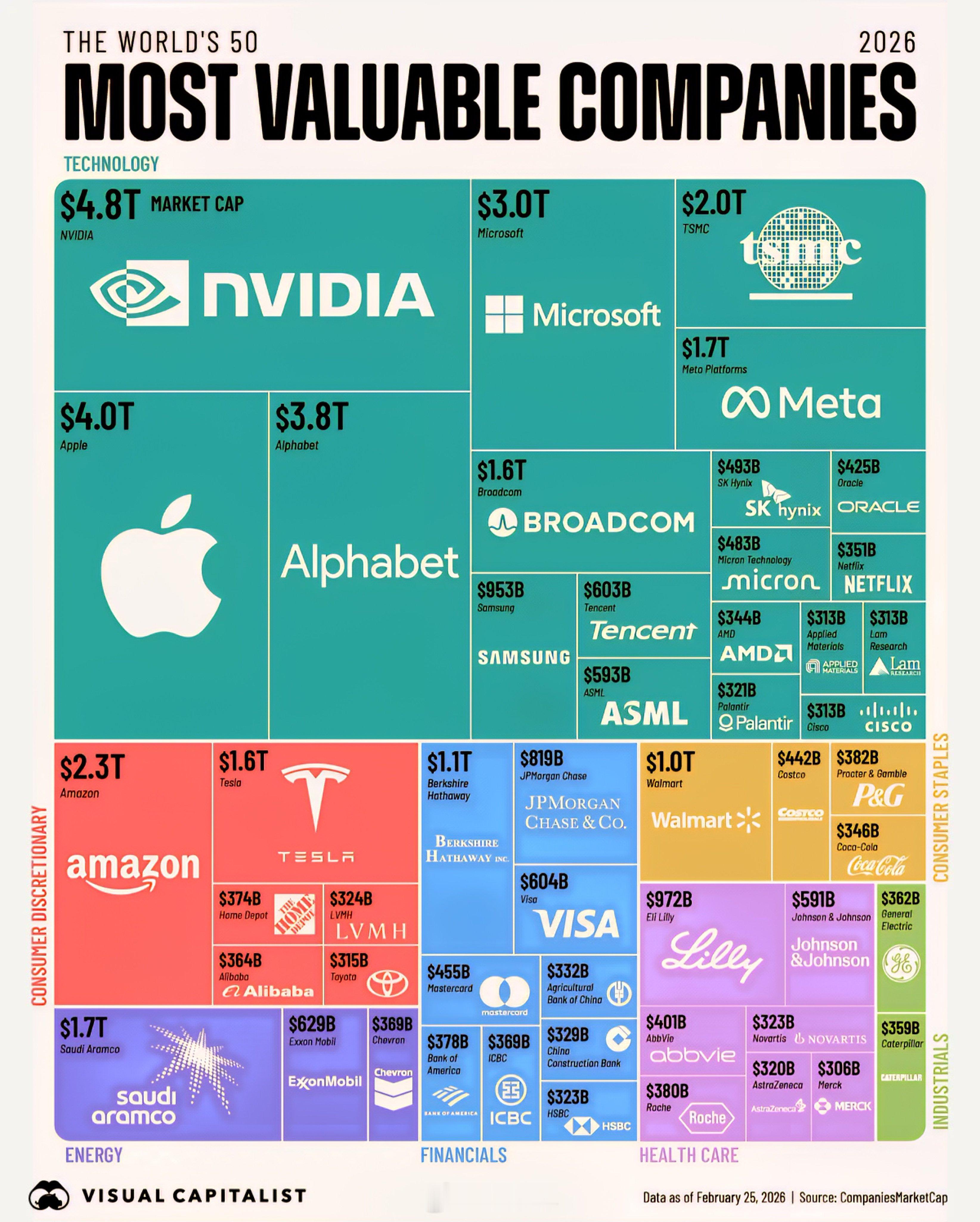 来源:CompaniesMarketCap,经由 Visual Capitalist 的 Voronoi 图表