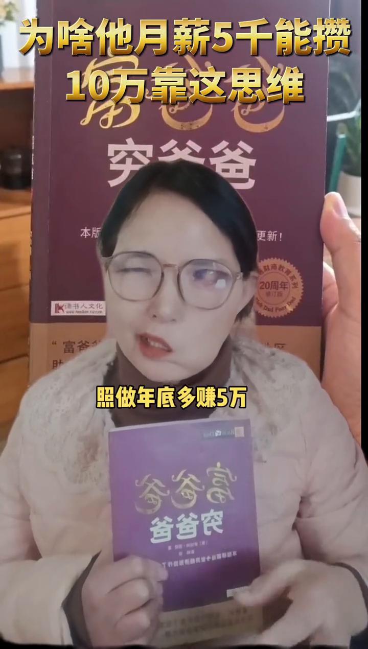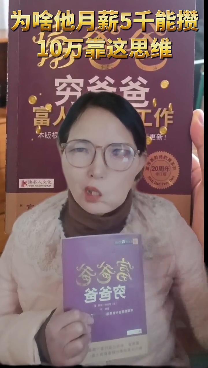 为啥他月薪5千能攒10万靠这思维? 富爸爸从不问赚多少,只问怎么让每一份钱工作。比如月薪5千、1千,卖基金4千,生活开支普通人搞反了才存不下钱。 想变富先换思维,下单送工资分配黄金便利袁。戳头像今晚8点直播间,教你富爸爸思维,照做年底多赚5万。你工资咱分配的点橱窗有书,富爸爸给你答案。