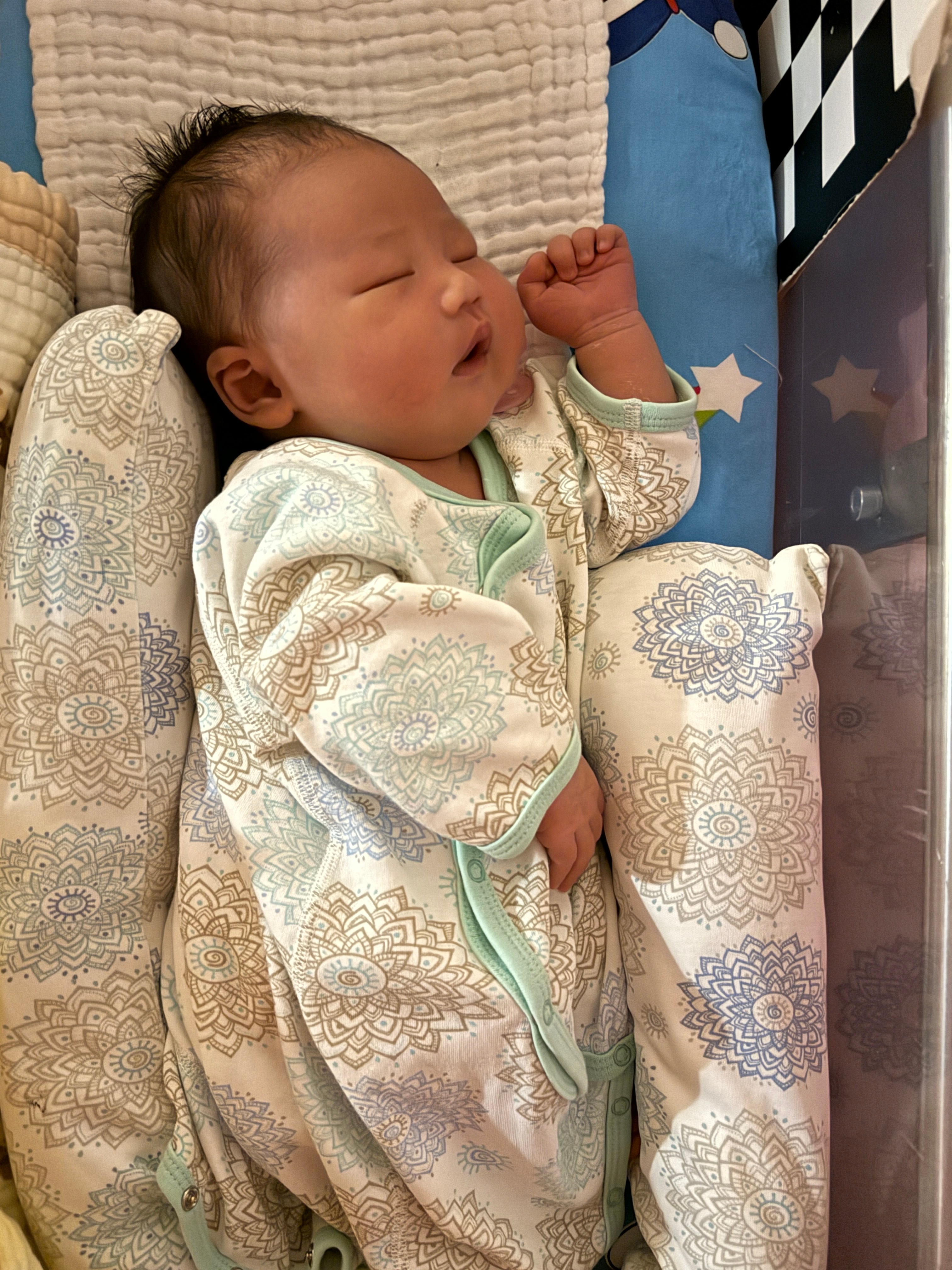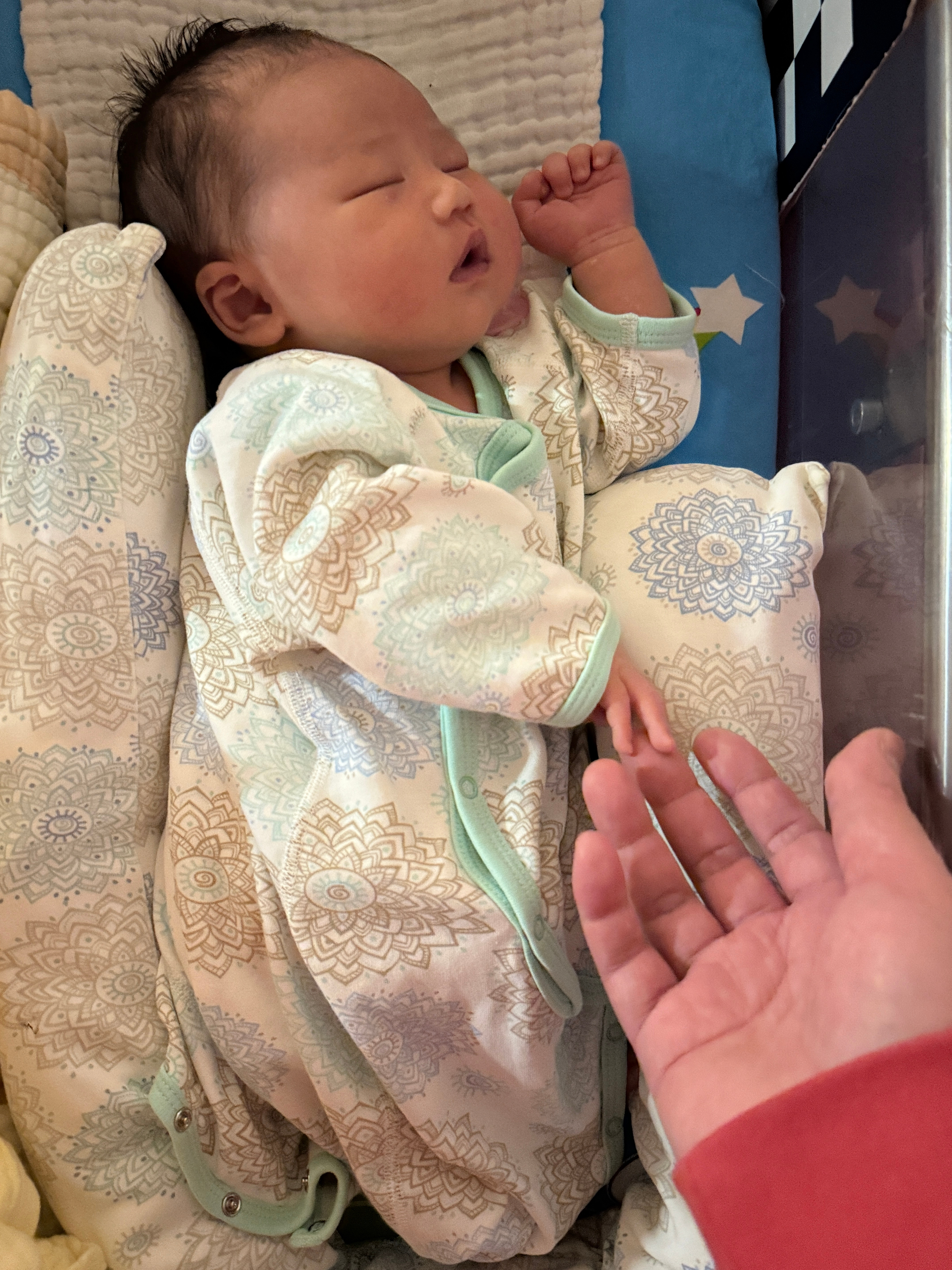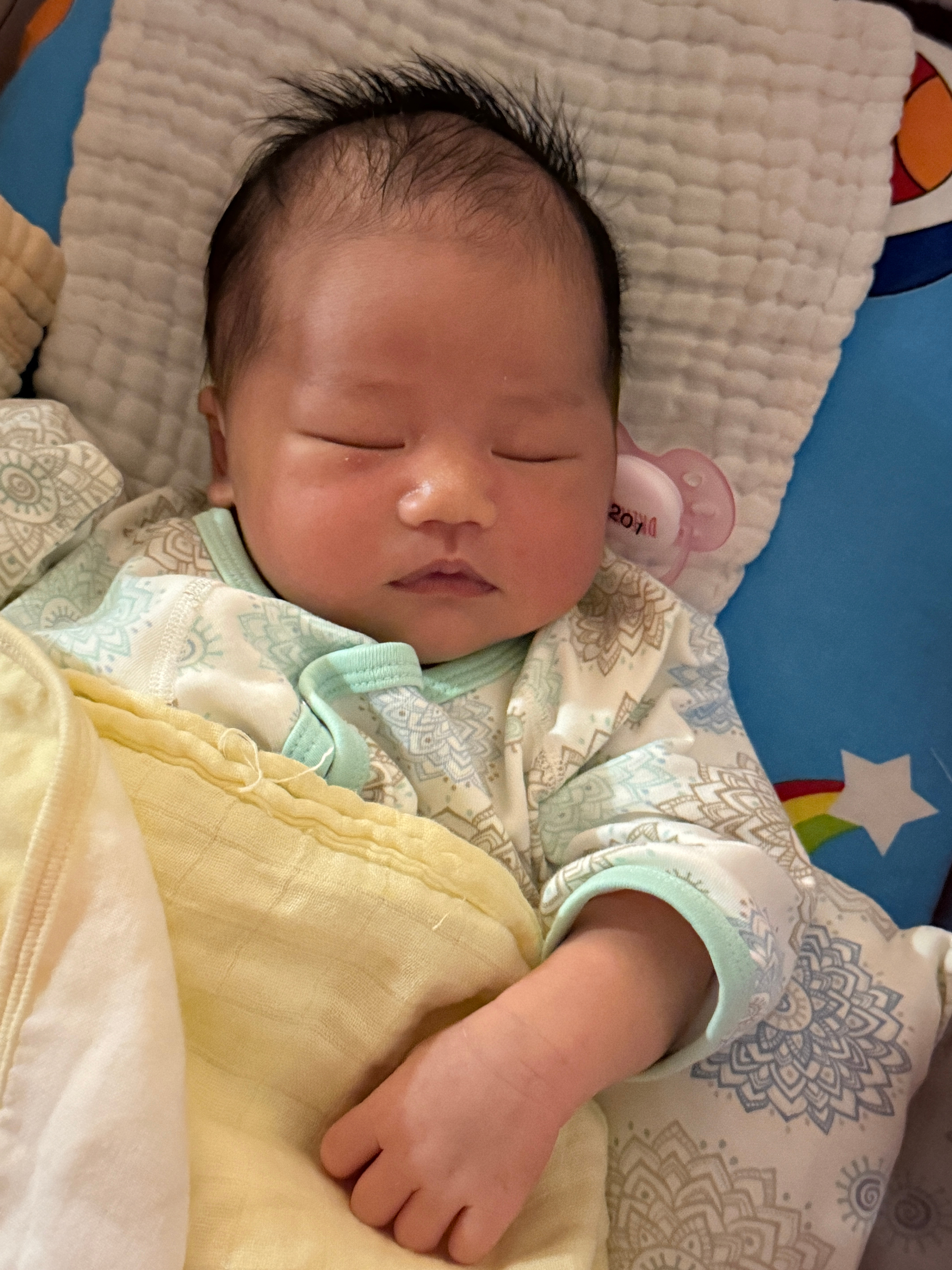 小爆爆下午从护士站推上来一直哼唧唧的不想睡觉,睁着眼睛摇头晃脑张大嘴巴,我看了下18:15分才喝的80ml ,咋就又饿了呢。抓紧给他泡了60ml ,哐哐喝下去后一声不吭立马睡觉了,没有吐奶。这才10天的小宝宝咋就这么能喝呢护士小姐姐说他现在一天涨60克。我看着脸确实是越来越圆了,手也开始长肉了。