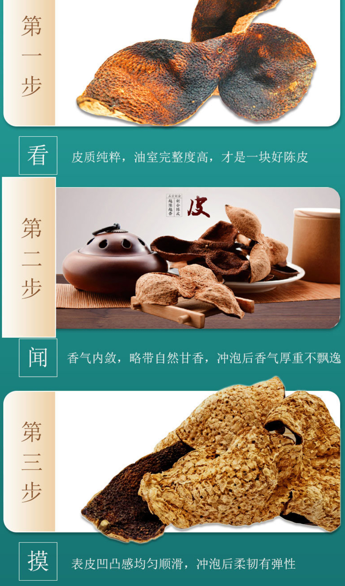 陈皮表面油室完整,有效活性物质含量高,泡茶久泡不散味,煲汤煮菜入味快,淡淡陈香中和油腻,是粤菜点睛之笔,也是日常食养的万能辅料。