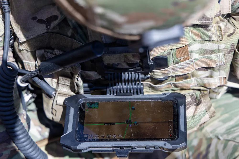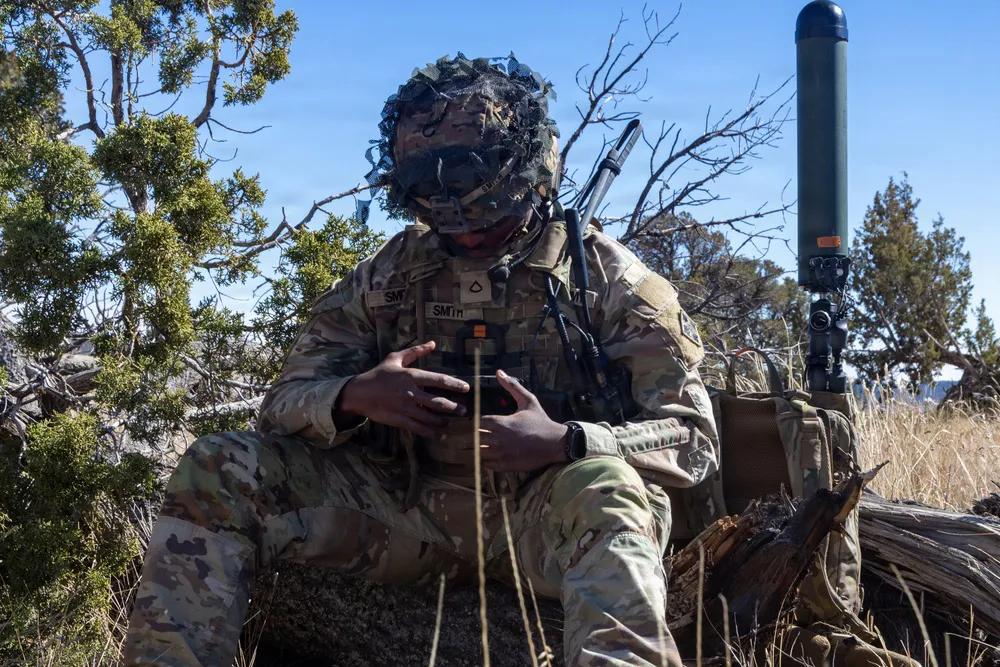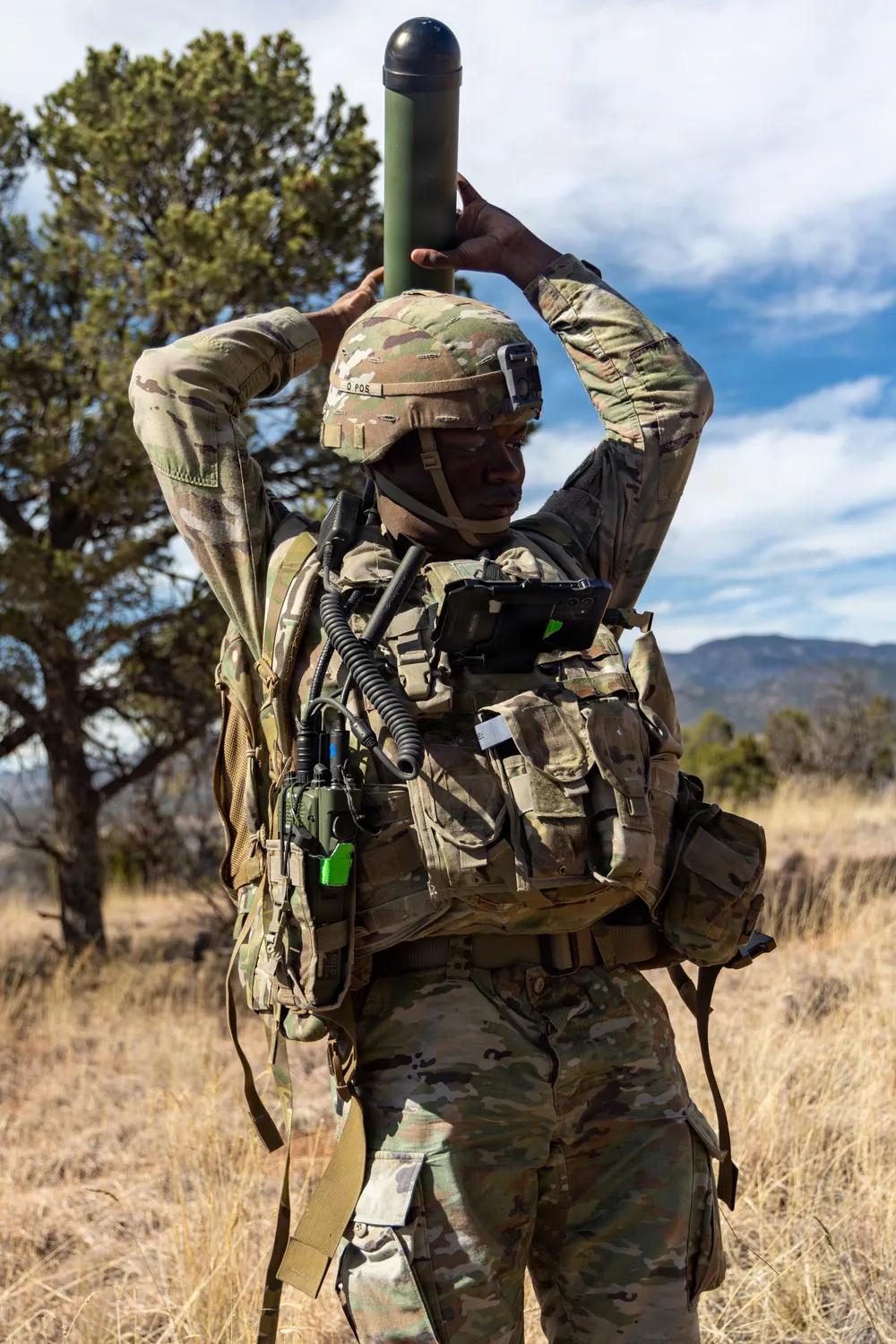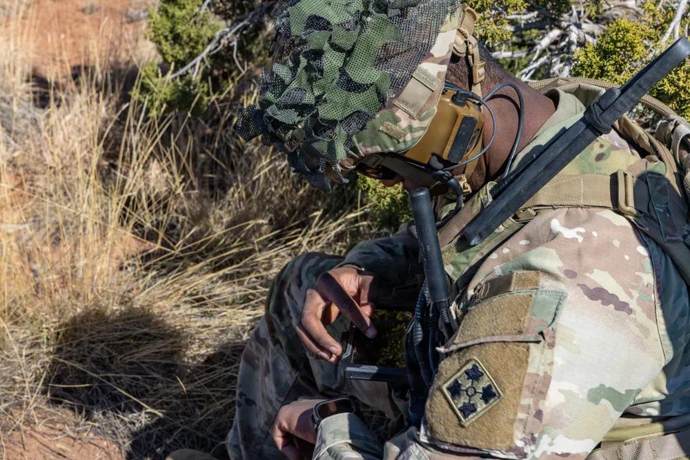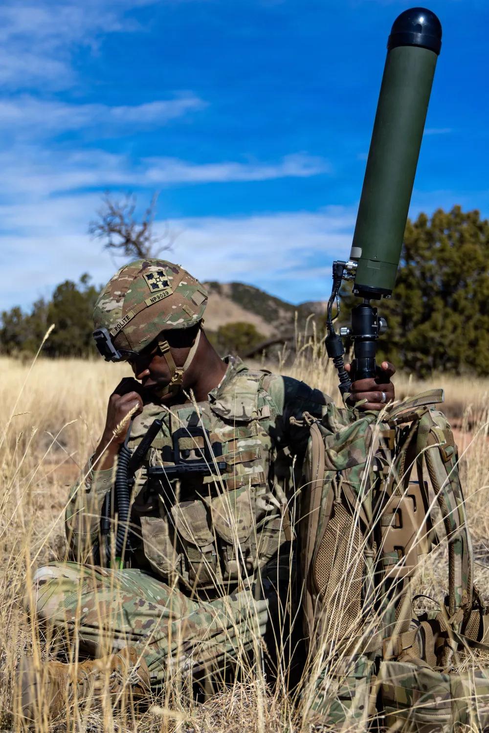 2026年3月11日,隶属于第四步兵师炮兵司令部及营的美国陆军士兵,在科罗拉多州卡森堡的常春藤刺击5演习中,测试美国陆军的单兵便携式通信设备。该设备通过将持续空中监视引入下一代指挥控制系统,支持“常春藤刺5”演习,增强了战场上的态势感知和决策能力。