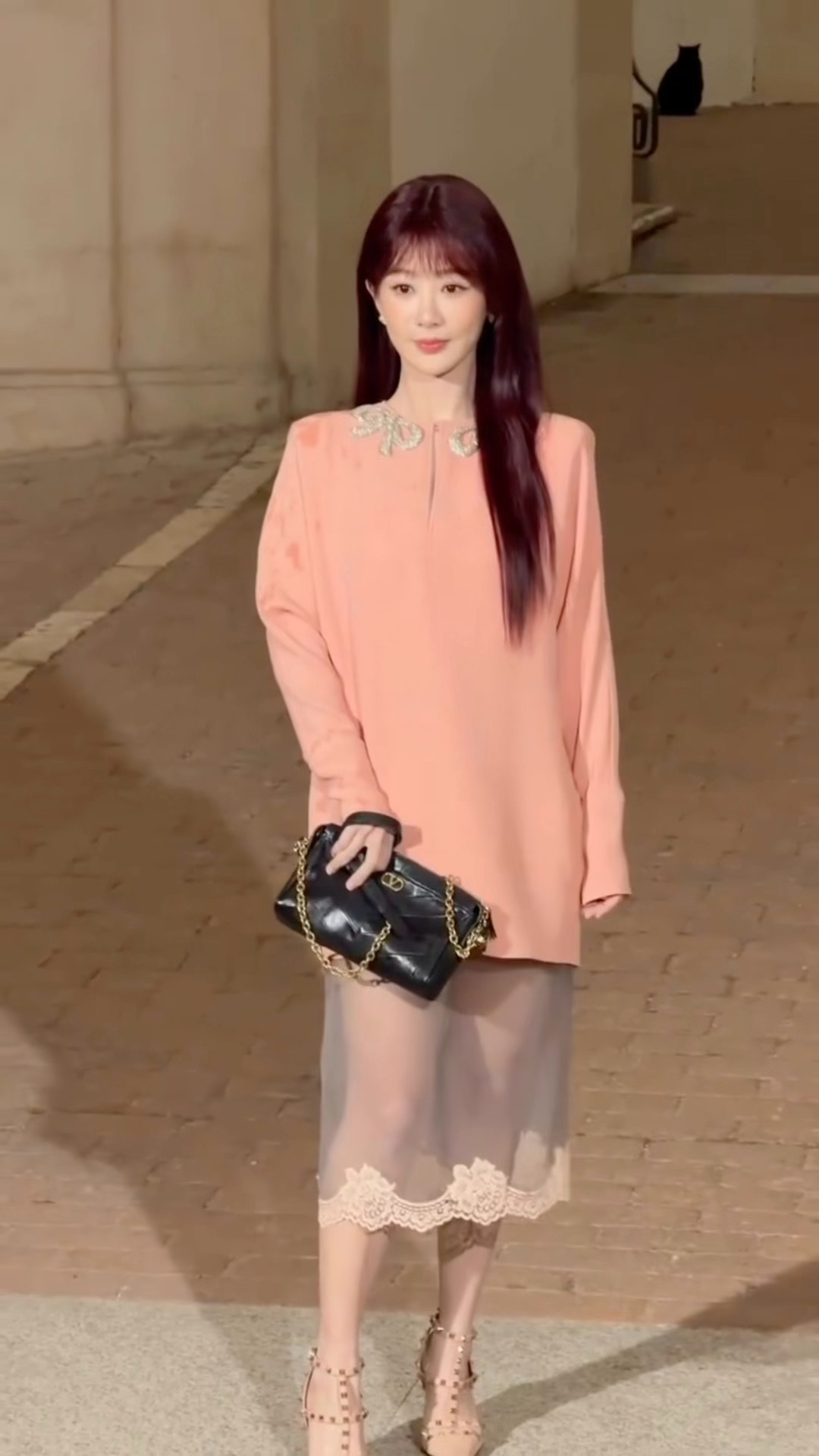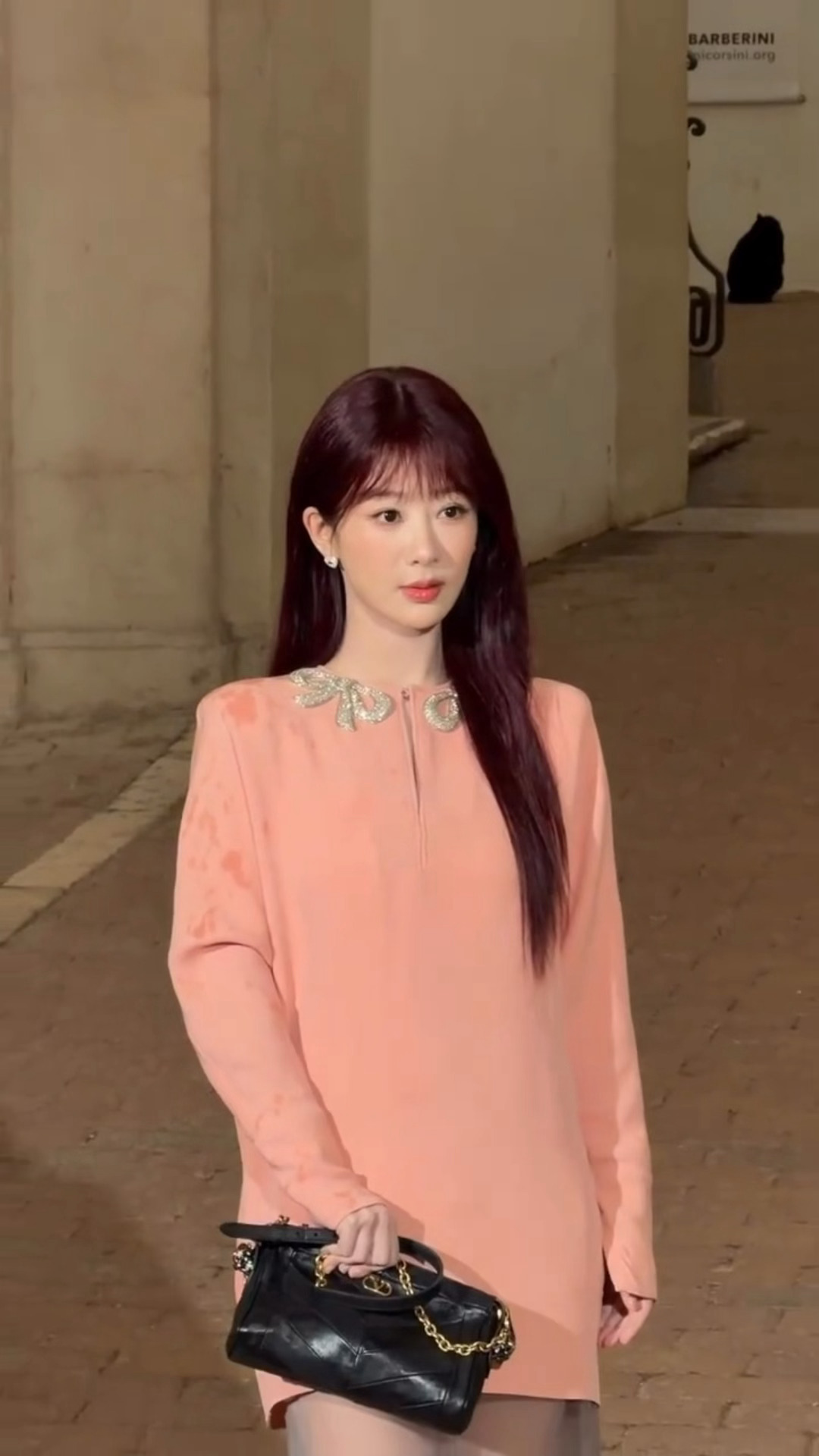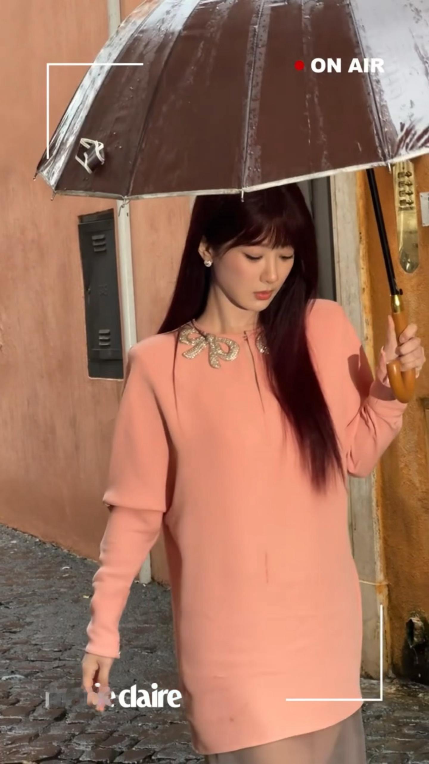 留洋千金既视感,我紫没有不闪耀罗马的义务杨紫罗马雨中拍出发图杨紫红发粉裙
