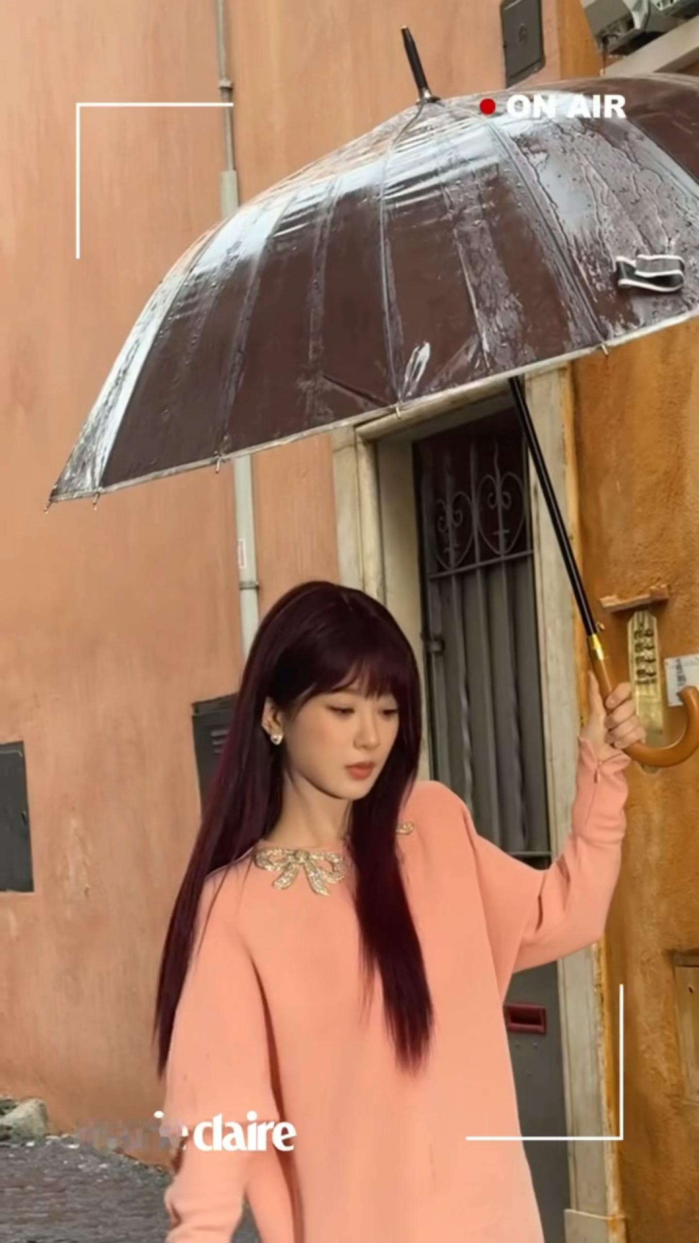 留洋千金既视感,我紫没有不闪耀罗马的义务杨紫罗马雨中拍出发图 杨紫红发粉裙