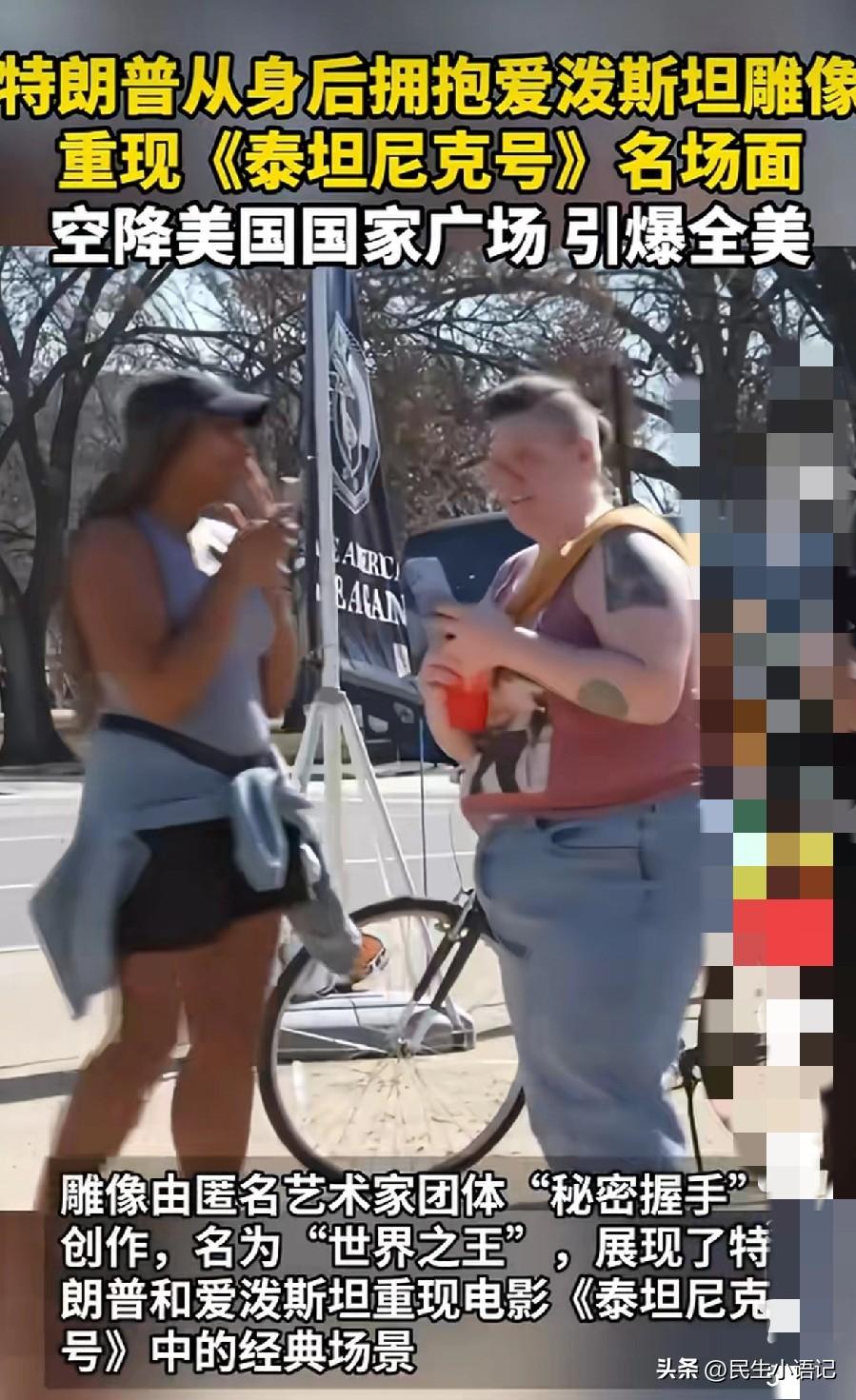 万万没想到啊,一座特朗普模仿“泰坦尼克号”从身后环抱爱泼斯坦的雕像,突然空降美国国家广场,一时间火了。 3月10当地报道,此雕塑一亮相,美国群众直接都蒙圈了,在雕像旁边,居然还放置了两人以前的合照。 有人吐槽说,这波操作比剧情还荒诞,妥妥的“黑色幽默”天花板。毕竟,爱泼斯坦案的瓜本就够大,再搭上特朗普的流量,这波“跨界联动”,想不火都难! 一边是政坛大佬,一边是争议缠身的爱泼斯坦,这拥抱不是浪漫,是把“陈年旧瓜”直接焊成了顶级流量密码! 这背后到底是艺术家的大胆隐喻,还是单纯博眼球的操作?目前没官方说法,但丝毫不影响它成为全网讨论度第一的“名场面”。毕竟,这种把争议人物玩出花样的操作,从来都不缺关注度。 大家怎么看这荒诞的一幕,评论区欢迎留下您的宝贵意见。