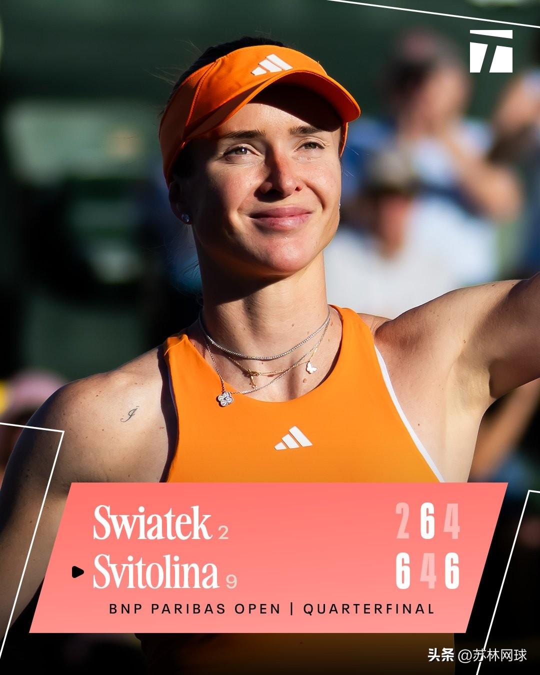 🇺🇦斯维托丽娜6-2/4-6/6-4斯瓦泰克🇵🇱 进晋级印第安维尔斯半决赛。 复出的妈妈级球员中,乌克兰人状态极其稳定。