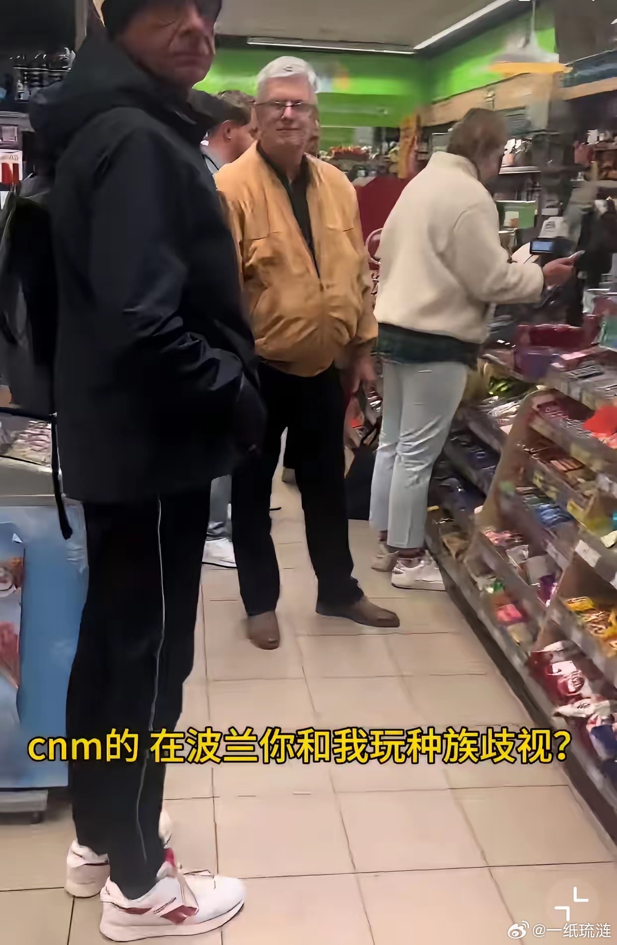 波兰,一位中国小哥带着他的波兰女朋友逛超市,一个老外见其女朋友漂亮,上前询问,可能这老外心里不平衡了,用波兰语问,你很漂亮为什么要找一个中国佬!小哥听到后直接开骂,在波兰跟他玩种族歧视,这么老了还说这么不尊重人的话,以为他听不懂波兰语吗,本以为波兰是个友好的国家…老外一声不吭,最后女朋友拽着小哥走出了超市…