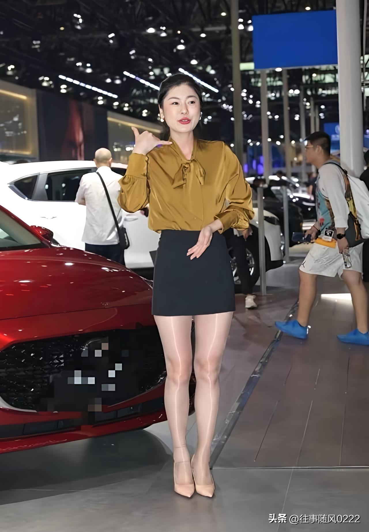 优雅黑裙,自信步伐,时尚车展,你最闪耀