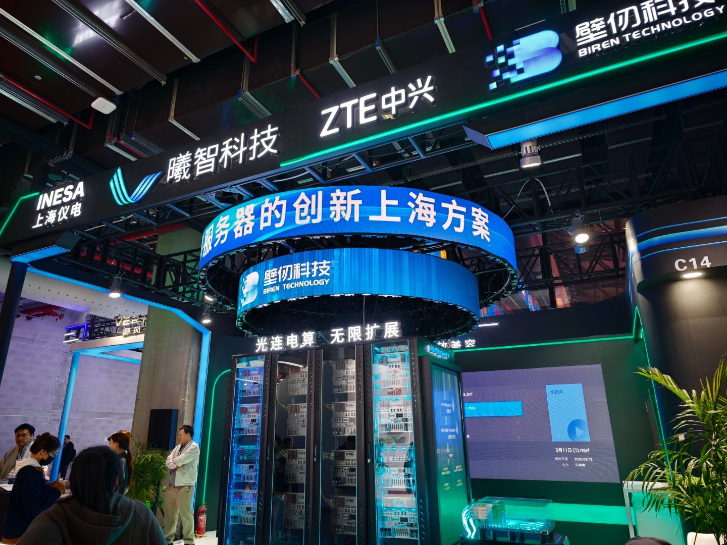 中兴,壁仞科技,上海仪电,曦智科技在awe 展示了一个128个GPU(壁仞科技的)走OCS光互联的商用超节点,算是一个光连电算的商用试点