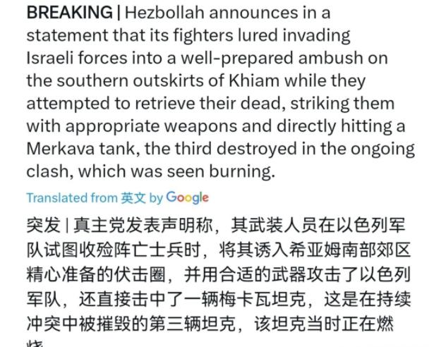 以色列军队中了埋伏,损失惨重! 当地时间3月10日,以色列军队毫无顾忌地闯入黎巴嫩希亚姆南部郊区,明目张胆地实施侵略行为,丝毫没把真主党的抵抗力量放在眼里,殊不知,一张针对他们的大网早已悄然铺开。 希亚姆这地方本身就藏着天然的伏击优势。它位于黎巴嫩东南部,距离贝鲁特四十公里,坐落在四座山脉之间,海拔从五百米到九百米不等,地形高低错落,多沟壑和隐蔽地形。这样的环境里,装甲部队难以展开,空中侦察也容易被山体遮挡,恰恰是游击战的理想战场。 更关键的是,这里属于伊克林·哈鲁布地区的沿海部分,城镇边缘与山地无缝衔接,真主党武装可以借助居民区掩护,轻易完成部署和撤离,让以色列军队的先进侦察设备难以锁定目标。 真主党的准备工作更是做足了功夫,这张埋伏大网早就在暗中编织。作为伊朗最核心的盟友,真主党如今的军事实力早已今非昔比。核心战斗人员就有两万到三万人,加上民兵动员能力能达到十万,光是火箭弹和导弹储备就有十二万到二十万枚,从短程到远程全覆盖。 针对以色列的装甲优势,他们专门配备了大量反坦克武器,其中Almas-3反坦克导弹更是精准打击的利器。这款导弹是伊朗根据缴获的以色列“长钉”导弹逆向工程研制的,最大射程十六公里,能通过无人机发射,实现视距外打击。 它的串联高爆战斗部专门对付多层装甲,还能借助红外成像制导,不管是烟雾遮挡还是夜间作战,都能锁定坦克薄弱的顶部装甲。更棘手的是,这种导弹采用“发射后不管”的设计,操作员打完就能转移,大大降低了被发现的风险,而真主党已经储备了数千枚这类导弹,足以形成持续打击压力。 除了武器装备,真主党的战术部署也针对性极强。他们在黎巴嫩南部构建了庞大的隧道网络,深达四十米的地下工事既能藏匿人员和武器,又能快速转移兵力。这次埋伏大概率就是通过隧道系统悄悄完成兵力集结,再利用地形优势分点布控,形成交叉火力。 而且真主党擅长分散作战,以多人小组为单位独立行动,打了就撤,让以色列军队的集群作战优势完全发挥不出来。更重要的是,他们还与叙利亚、伊拉克的武装力量形成联动,共享情报,这次行动很可能得到了周边盟友的信息支持,提前掌握了以色列军队的行动路线和时间。 以色列军队的轻敌和战略误判,更是把自己直接送进了埋伏圈。长期以来,以色列依赖先进的军事技术,觉得自己的装甲部队、空中支援和电子战系统天下无敌,压根没把真主党的抵抗力量放在眼里。他们可能以为凭借“铁穹”反导系统和AI作战体系,就能掌控战场主动权,却忽略了在复杂地形下,技术优势会被大幅削弱。 更关键的是,当前加沙冲突牵扯了以色列大量精力,他们在加沙边境加固“黄色线”屏障,部署重兵,难免导致北部黎以边境的防御出现疏漏。这种两线牵扯的局面,让以色列军队难以集中力量,给了真主党可乘之机。 以色列的作战模式在希亚姆的地形里完全水土不服。他们习惯了空地协同的精准打击,依赖“薰衣草”“火力工厂”这类人工智能系统识别目标、规划攻击,但在山地和居民区交织的环境中,AI识别容易出现误差,还可能误伤平民引发国际谴责。真主党恰恰利用了这一点,将作战阵地融入居民区,让以色列投鼠忌器。 而且以色列的主战坦克“梅卡瓦MK4”虽然防护精良,但在地形狭窄的区域机动性受限,很容易成为反坦克导弹的活靶子。2025年就有27辆该型坦克被真主党击毁的记录,足以说明其在这类战场的脆弱性。 这次冲突的升级还反映出地区局势的复杂变化。自3月初以来,联合国驻黎巴嫩临时部队已经记录到超过四千次火力活动,黎以临时边界“蓝线”的交火明显违反了安理会第1701号决议。 冲突已经造成五百七十多人丧生,其中包括大量妇女儿童,七十多万人被迫流离失所,黎巴嫩本就艰难的人道形势雪上加霜。以色列军队的越境行动不仅遭到真主党的顽强抵抗,也受到国际社会的广泛谴责,中方已在联合国安理会呼吁以色列立即撤军,推动双方停火止战。 从更深层看,这次埋伏暴露了以色列军事战略的固有缺陷。他们过度依赖技术优势,轻视了非对称作战的威力,也低估了对手的适应和学习能力。真主党通过逆向工程掌握先进武器技术,将无人机与导弹结合,打造出低成本、高效率的打击体系,这种模式让以色列的高成本防御系统难以承受。单枚火箭弹成本仅五百美元,而“铁穹”拦截弹一枚就要五万美元,长期消耗下来,对以色列的经济也是巨大压力。 说到底,以色列这次的损失惨重,本质上是侵略行为遭到了正义抵抗的必然结果。在复杂的地区局势和变化的力量对比下,单纯依靠军事优势推行扩张政策,必然会付出代价。希亚姆的埋伏只是一个缩影,它反映出的是地区力量平衡的微妙变化,以及非对称作战模式对传统军事思维的冲击,而这种冲击在未来的地区冲突中,还会持续显现其影响力。