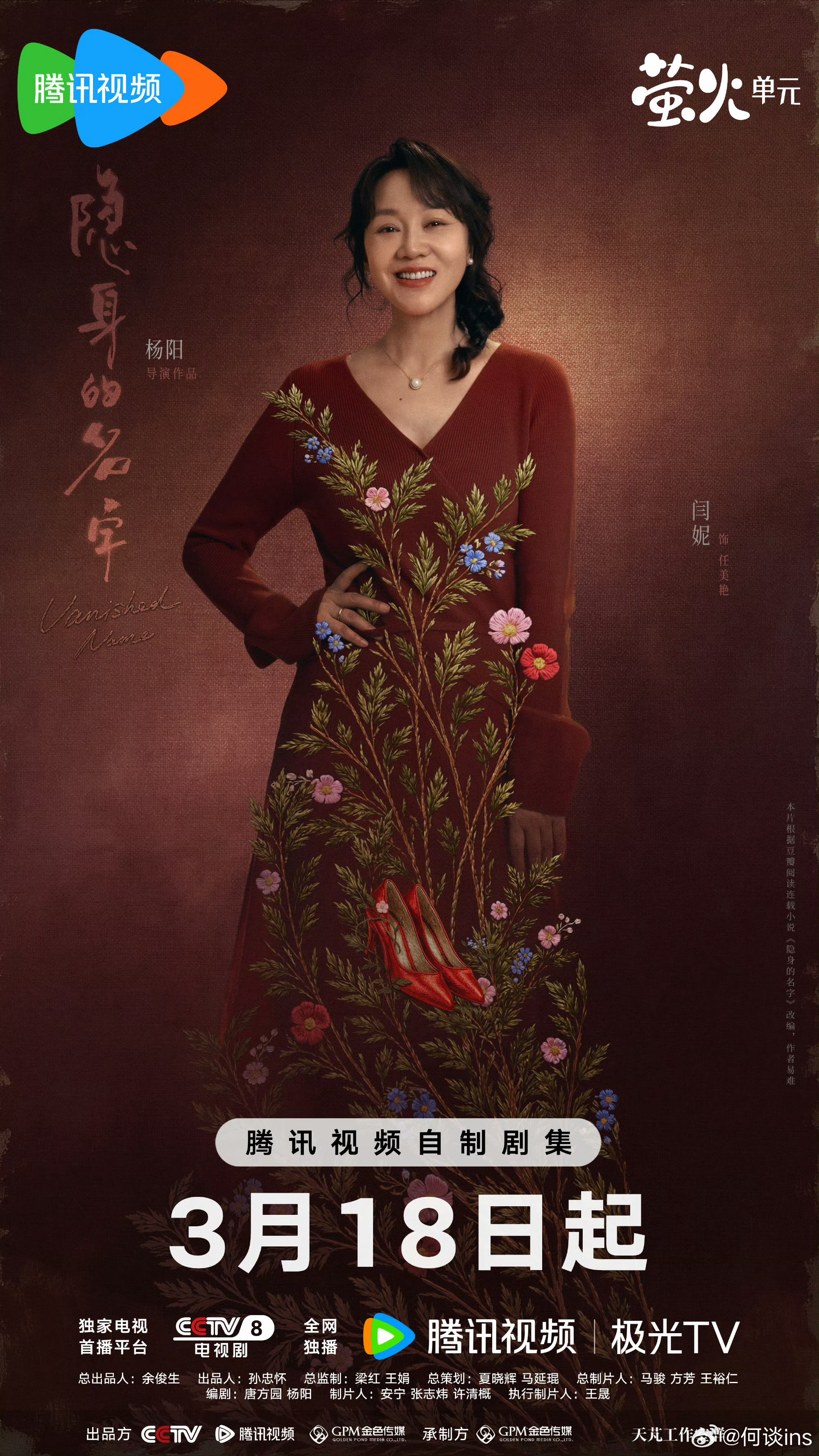 《隐身的名字》定档3.18播出倪妮、闫妮、刘雅瑟、刘敏涛、董洁