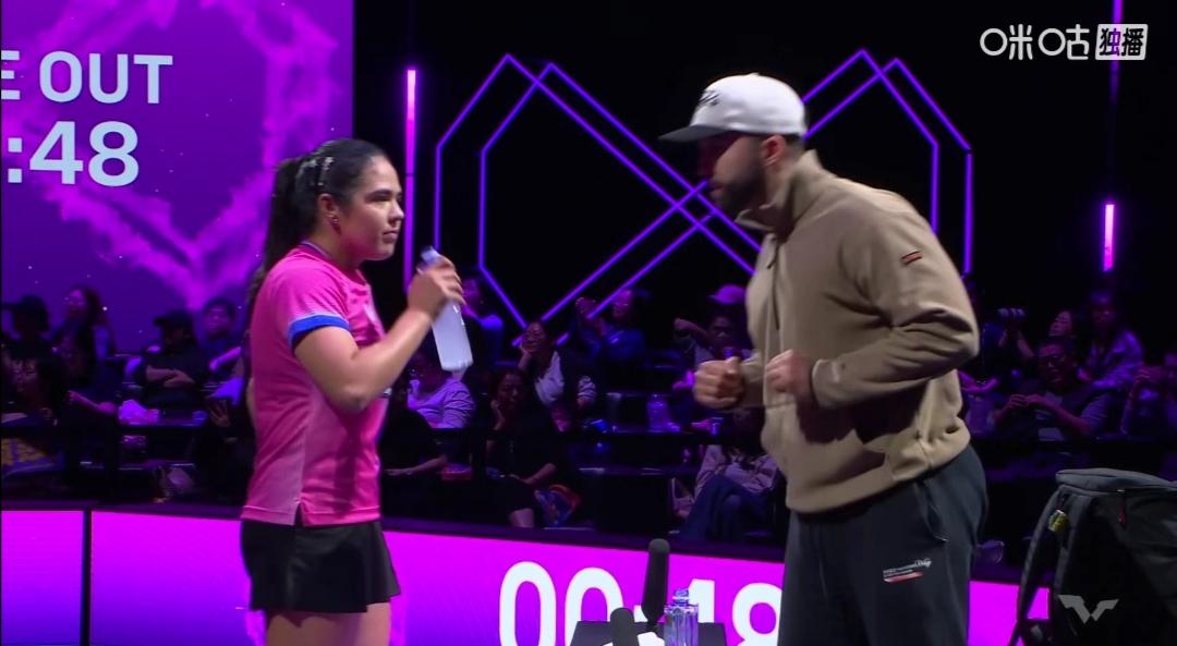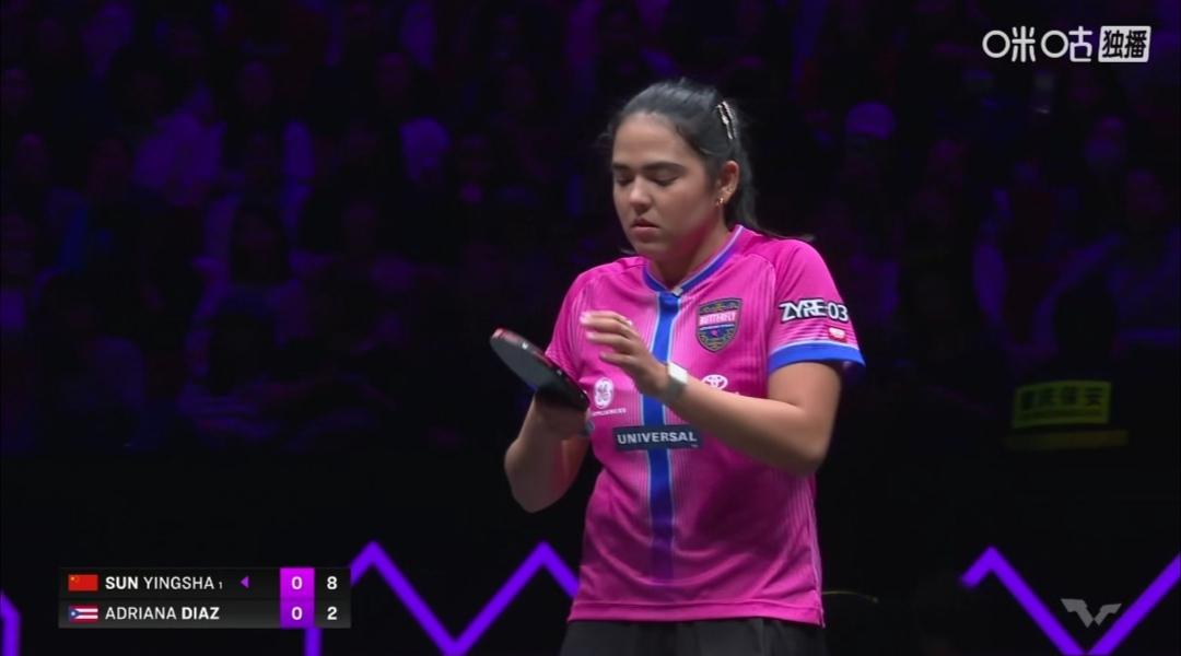 莎莎 1/8决赛“闺蜜”战,1/4决赛“德比”战! 1/8决赛“闺蜜”战。 女单1/8区,1/8决赛。 孙颖莎对阵“闺蜜”波多黎各迪亚兹,一个教英语,一个教乒乓球技艺! 莎莎3:0(11-5;11-7;11-5)零封波多黎各迪亚兹。 1/4区,1/4决赛国乒“德比”战。 1/4决赛 孙颖莎Vs队友蒯曼
