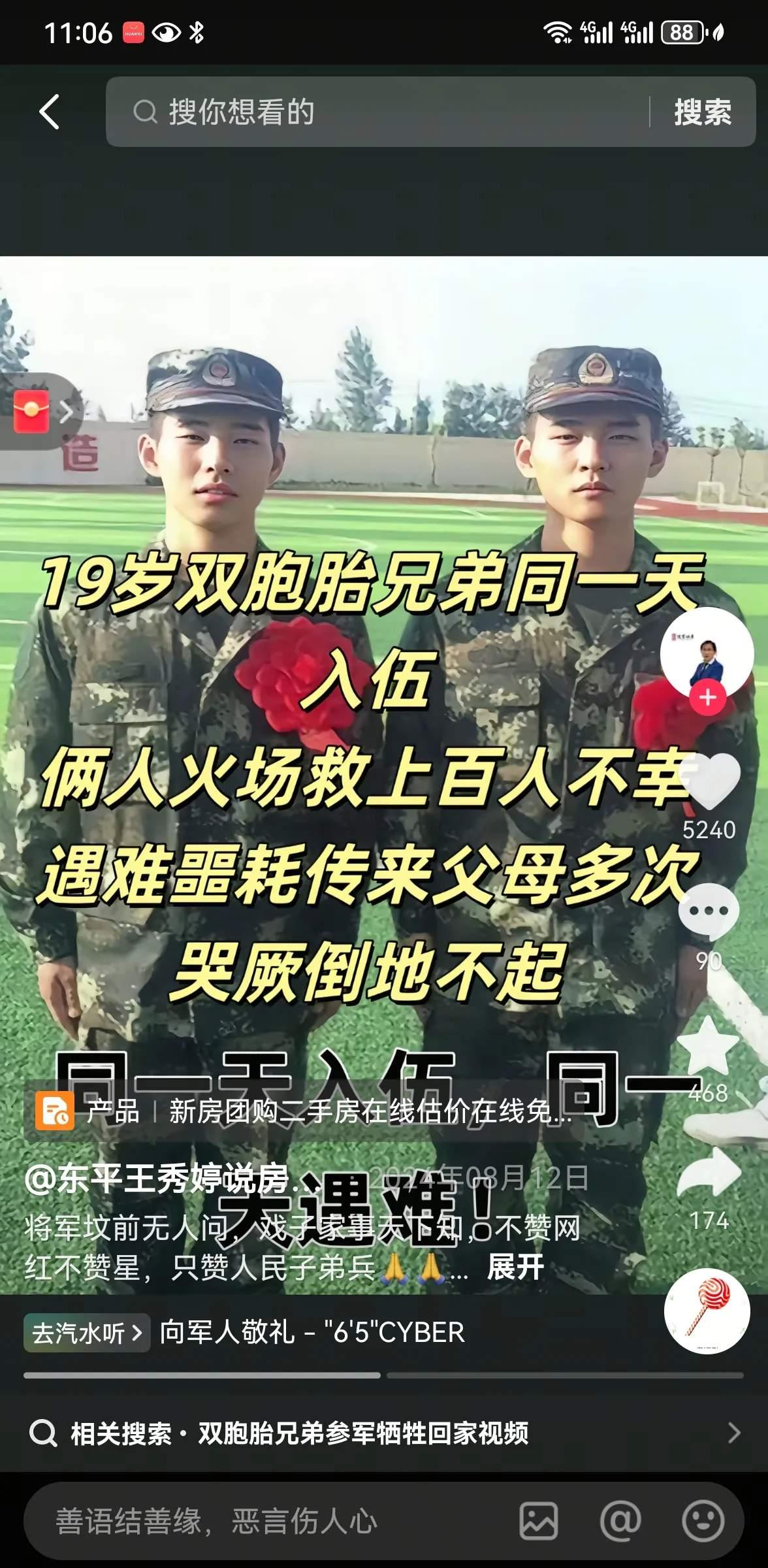 熊熊火焰随风起 噼里啪啦响不停 英雄猛冲入火墙 舍死亡生救他人 山河奔泪祭英灵 苍天低云挂长风 英雄丰碑闪荣光 激励后辈迎难冲 一对双胞胎消防战士用最美丽青春,以最英勇的大无畏精神,拿最宝贵的生命和热血普写了舍己救人的英雄赞歌。 英雄一路走好是我们最衷心的祝愿和最诚意的感谢。 我们期待国家和相政府单位对这对光荣牺牲的双胞胎的父母和家属给予他们最贴心的慰问,并给予他们最优厚的抚恤… 能让英雄安息,能使家属能迅速从悲痛中站起来,能为自己的英雄儿子感到骄傲,感到自豪。 向英雄致敬。