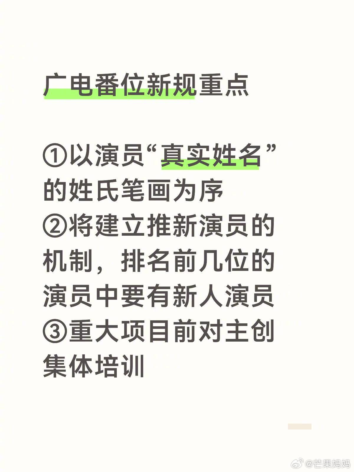 广电总局将公布演员番位规则内娱番位惯例,现在是全剧组演员从男女主到龙套一起按笔画排吗