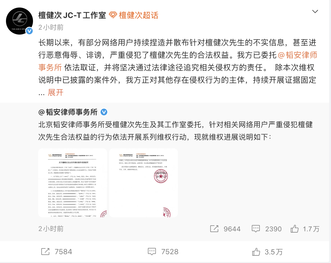 檀健次律师声明檀健次维权声明 檀健次方发布维权声明:“ 对于一切侵犯檀健次先生合法权益的行为,我方绝不姑息,必将依法追责到底。”