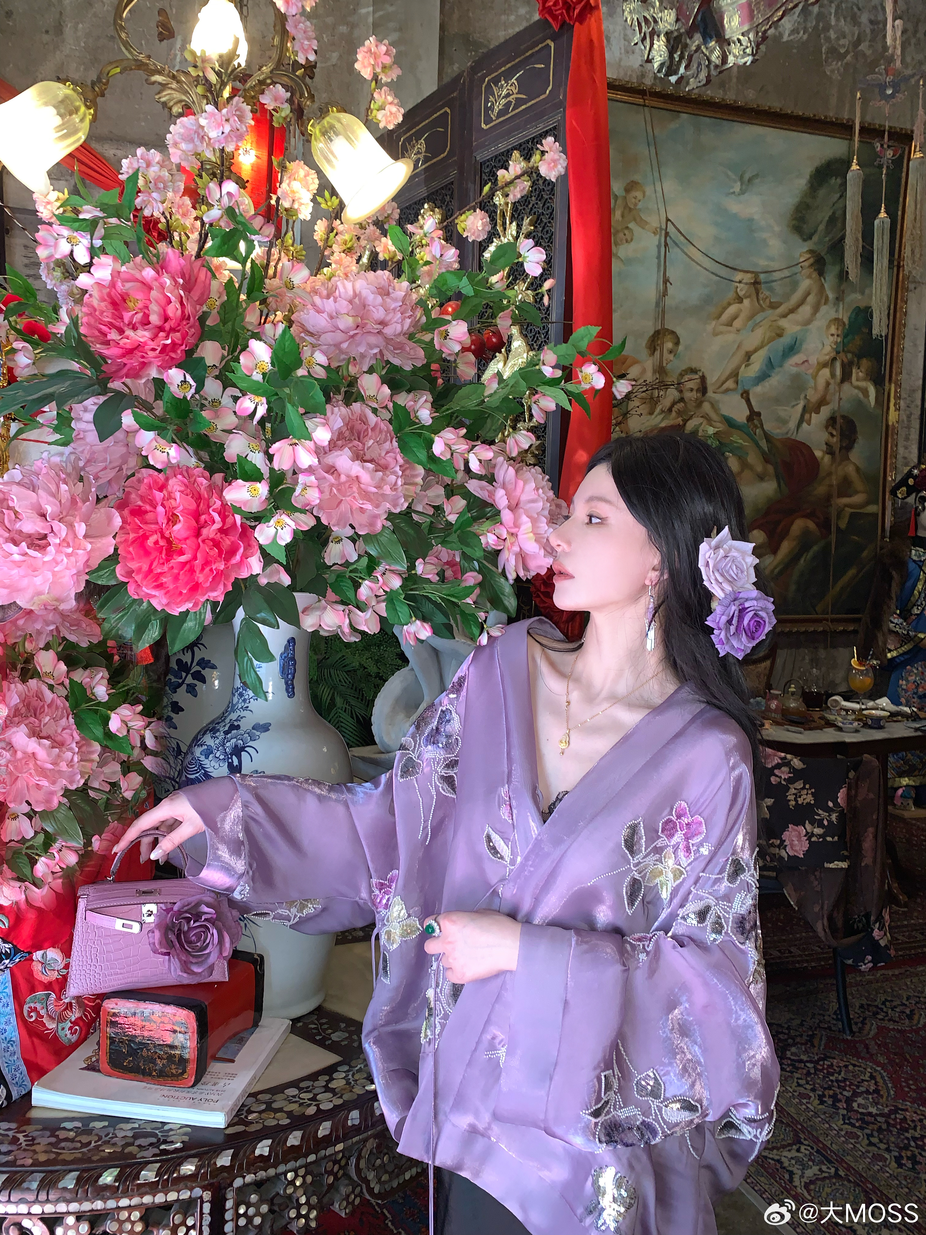 𝑴𝑶𝑺𝑺 𝟑.𝟏𝟓/𝟐𝟎:𝟎𝟎𝒑𝒎【鎏光瑃玉】💜💜新中式重工鎏光珠绣玫瑰外套鎏光紫的面料在领口处形成自然的光影层次,自带清冷贵气的氛围感。无扣开襟设计方便穿脱,也让叠搭更具灵活性。新中式穿搭