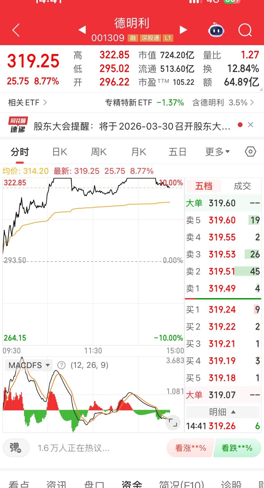 300w本金记录翻5倍(第14天)今日持仓票:德明今日总资产:320w
