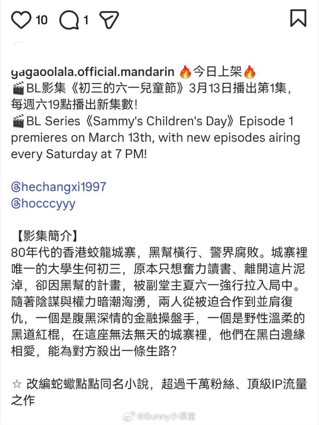 《初三的六一儿童节》空降播出,双男主何昶希、何衍朝今早气势汹汹置顶官宣,大有冲一把的节奏!刚刚两人不约而同删除官宣博文,怎么会这么幽默