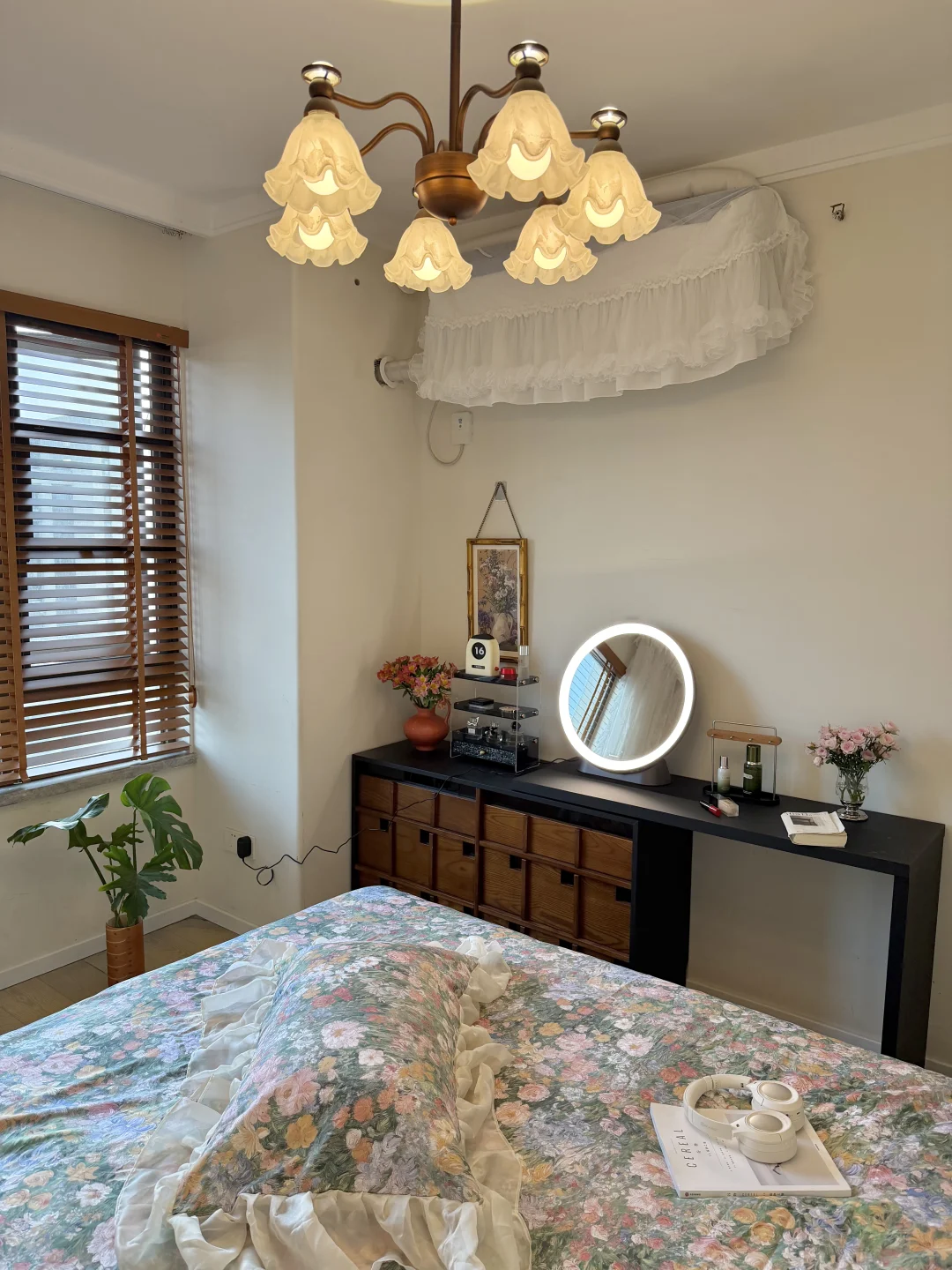 放了一张 40cm 深的梳妆台,刚好卡在床尾