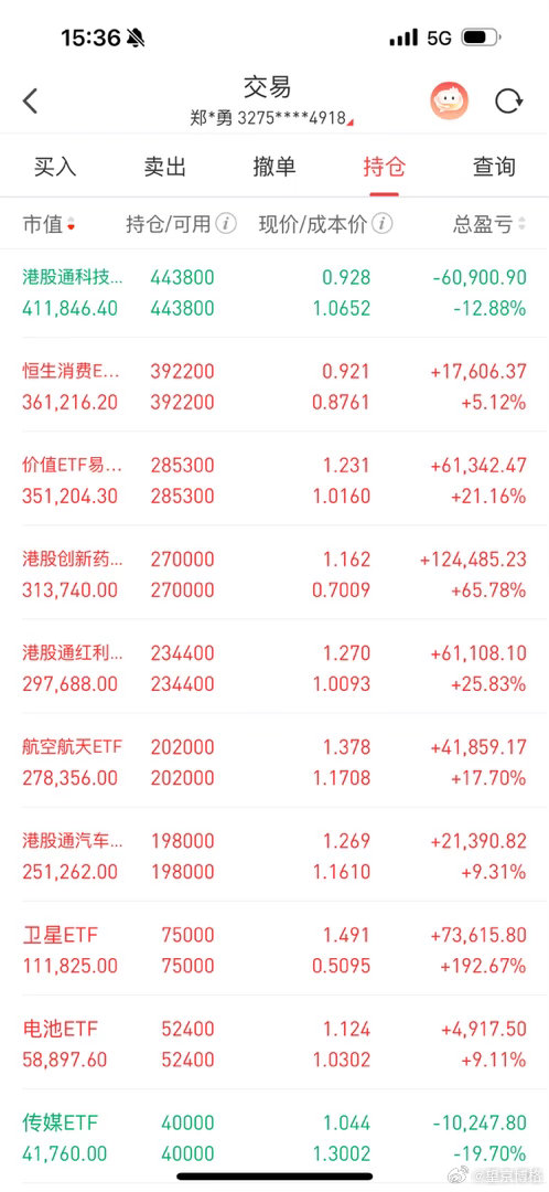 刚下飞机,打开ETF账户一看我靠全绿!我太难了..大家点赞安慰我一下基金恒生科技