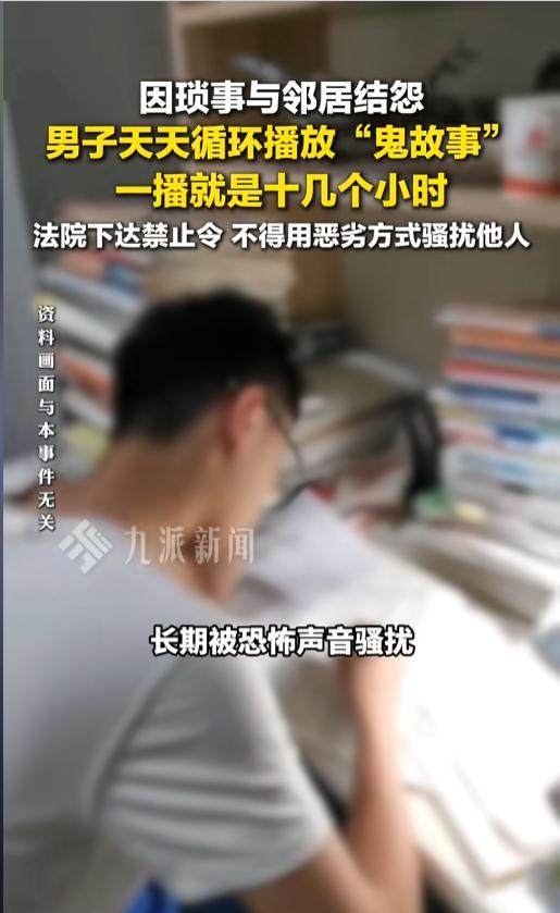 “缺大德了!”近日,中国普法公布了一则案例,让人直呼太奇葩了。一男子因为些鸡毛蒜皮的小事跟邻居闹了矛盾,为了报复邻居,男子竟想出了一个鬼主意——放鬼故事骚扰。邻居被他闹得苦不堪言,一纸诉状将男子告上了法庭。网友:这也太阴间了! 邻里之间,低头不见抬头见的,有什么矛盾说开了,各退一步就好了,没有必要因为一点小事伤了和气,更别说是对簿公堂了。 据媒体3月12日报道,该男子和邻居以前因为一些琐事闹了矛盾,男子怀恨在心,想出了一个极其缺德的报复办法。 他找来了一个喇叭,专门设置好了音量,让它达不到噪声的标准。随后用它循环播放起了恐怖音频,像什么荒山野鬼之类的,一放就是十几个小时,天天如此。 邻居可是被他弄哭了,完全没法正常生活。尤其是家里快要高考的孩子,听着外面的恐怖动静,根本没法静下心来学习。忍无可忍之下,邻居把男子告上了法庭。 法院认为,虽然音量没有超标,但这种行为严重扰民,当即下达了禁令。责令男子立即停止这种行为,也不允许再用恶劣的方式骚扰他人。 网友看后表示,这么缺德,自己不怕遭报应么?一看就是个极度阴狠的人,以后估计不会有人愿意跟他打交道了!邻居就应该向他索要精神损失费,让他狠狠地出一出血! 信息来源:《3月12日报道,