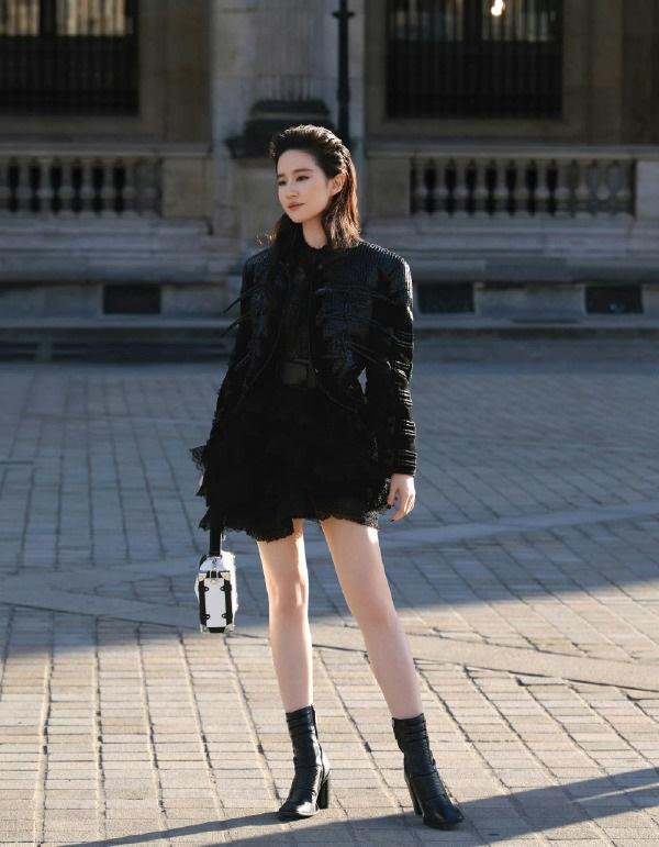 近日刘亦菲亮相时装周,她这回搭配了一身黑色的衣服,看上去非常的有型。 刘亦菲上身穿黑色皮衣,下身搭配黑色的短款纱裙,让她秀出了纤细的腰部线条和完美的身材比例。 这回刘亦菲还大秀细腿,脚踩黑色的靴子,彰显出了俏丽时尚范儿,真的好迷人。 刘亦菲这次特意把头发挽了起来,还画着精致的妆容,凸显出了满满的犀利感,也格外的有气势。 她有着特别苗条的身段,手上拎着银色的包包,看起来很有国际大牌明星风采,确实是太有吸引力了。