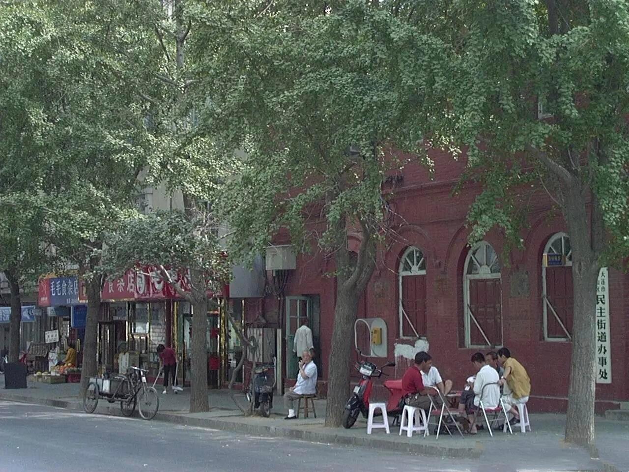 今天我和老公儿子去了叔叔家。走累了,坐小区院子石凳子上,看见一个大爷踉踉跄跄拄