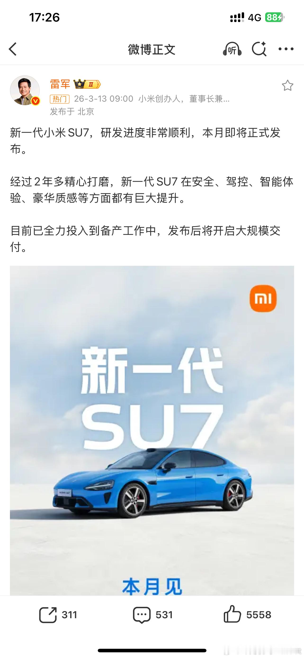 雷军称新SU7是造车5年最新答卷起码是说最新答卷而不是说最好答卷我也很好奇这一代