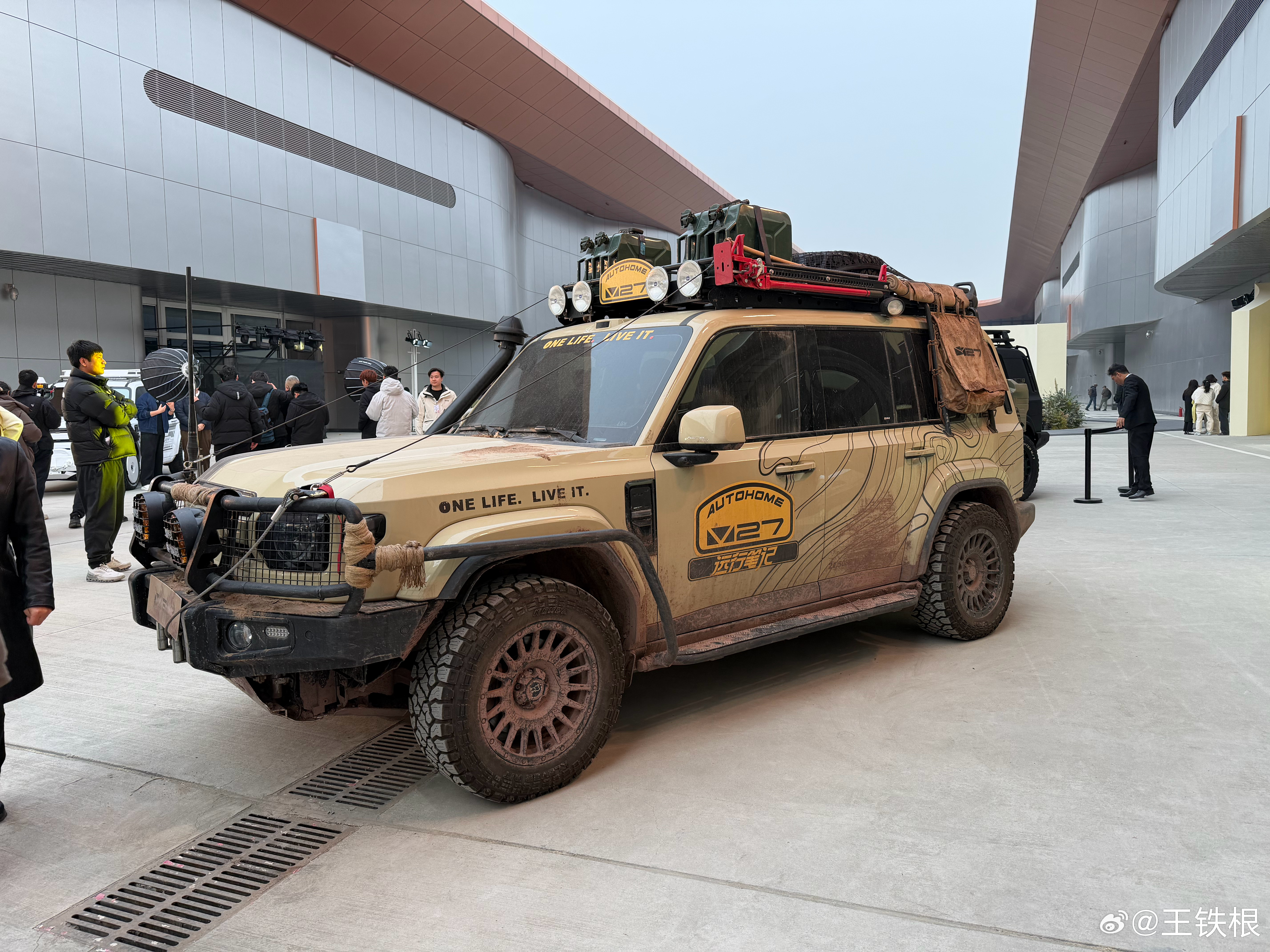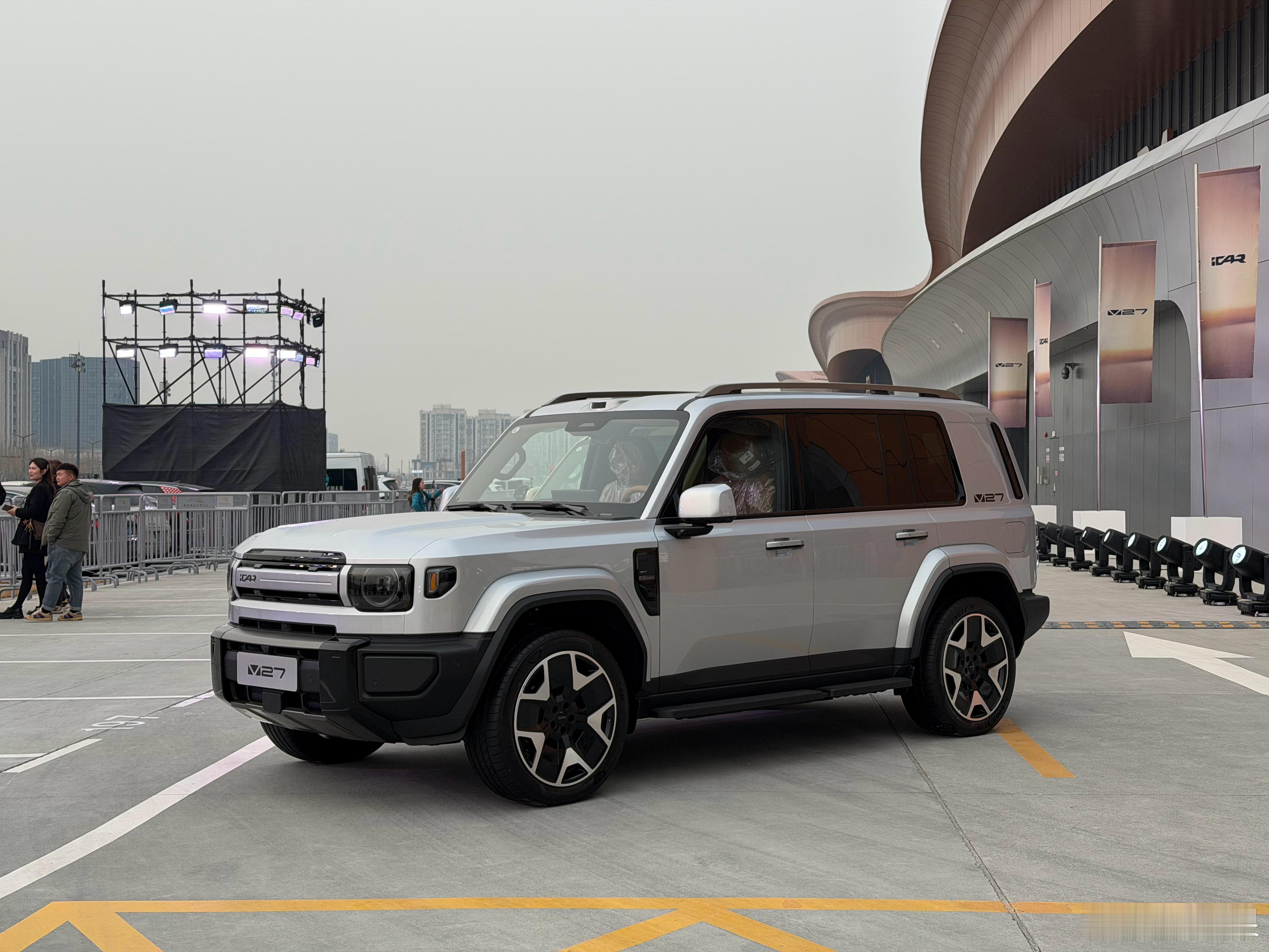 来看V27发布会,遇到一个车主有点面熟。这车升高、加铁杠、再加车顶行李架之后看着也太虎了,加塞车辆看到必然要退避三舍。