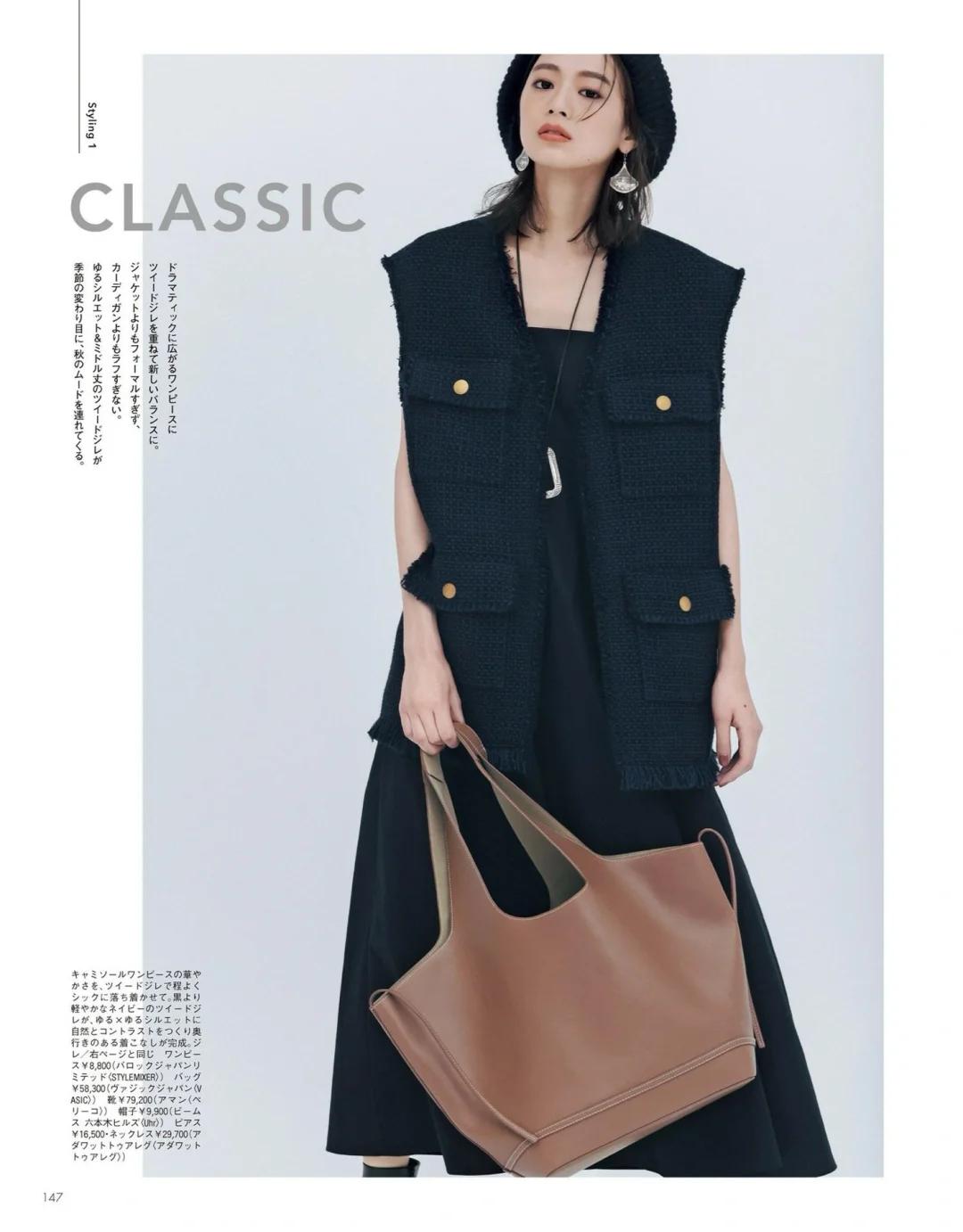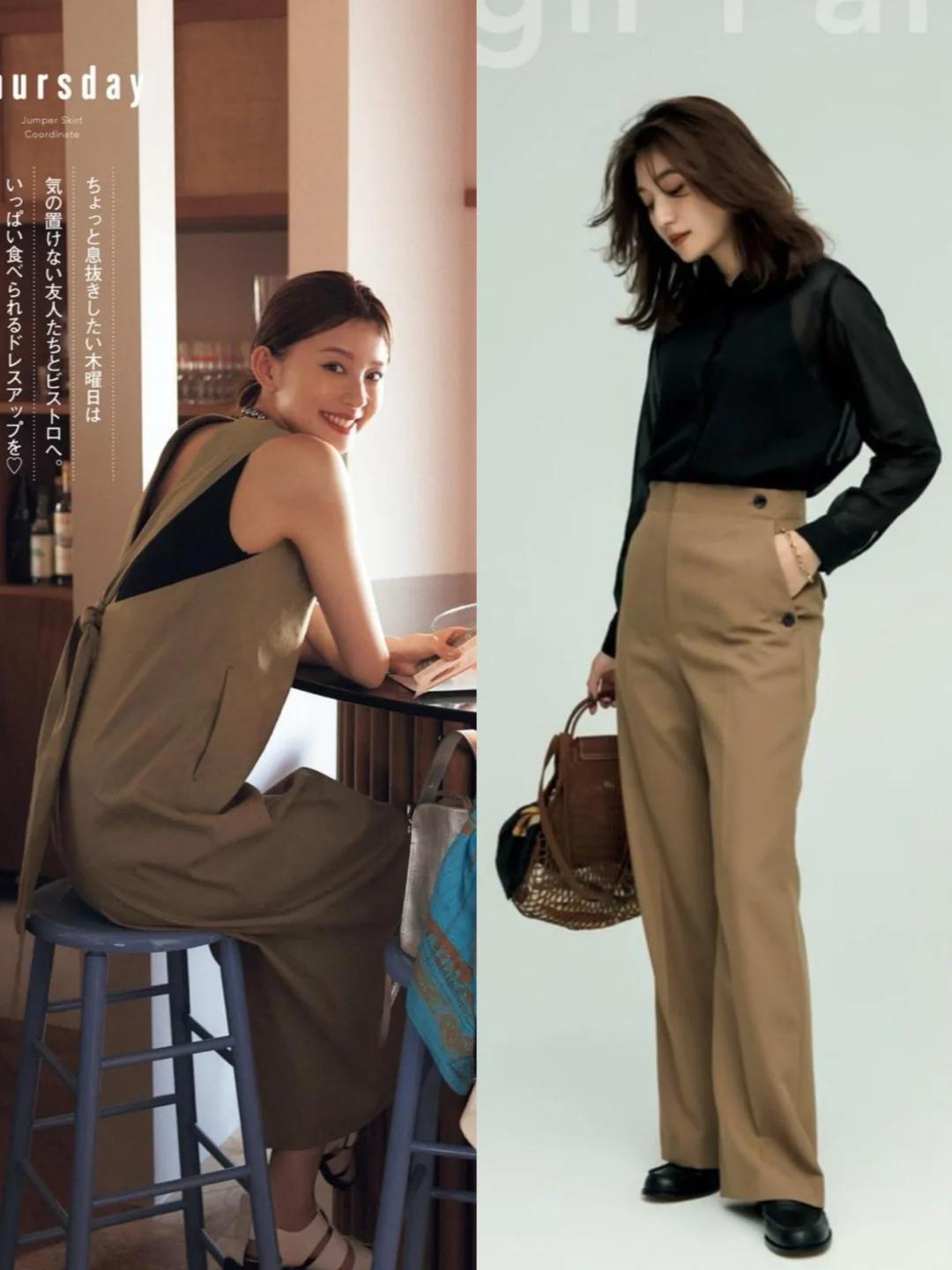 黑白灰大地色系穿搭才是最经典耐看的~ 黑白灰与大地色系的穿搭组合中,黑与卡其/棕的搭配堪称经典,能轻松打造出别具一格的时尚造型。其中一种巧妙的搭配方式是,内搭尽量保持上下同色,比如选择全黑的内搭组合,再外搭一件卡其色或棕色的外套。这样的搭配不仅能在视觉上拉长身形,显高又显瘦,还能散发出强大的气场。 有人可能会陷入一个误区,认为黑与卡其/棕的配色组合只适合秋冬季节。实际上,这一配色在春夏同样适用,关键在于选择轻薄、垂坠感好且带有光泽感的面料,如桑蚕丝、醋酸等。光泽感的面料能让深色部分更加闪亮,避免整体造型显得暗淡无光。春夏时节,最简单又经典的搭配莫过于小黑裙搭配黑色高跟鞋,再拎上一个棕色包包,尽显优雅气质。 此外,之前我们也探讨过背心、马甲在穿搭中的妙用,它们能为通勤装增添更多变化,中和掉过于严肃古板的元素,让整体造型更加生动有趣。