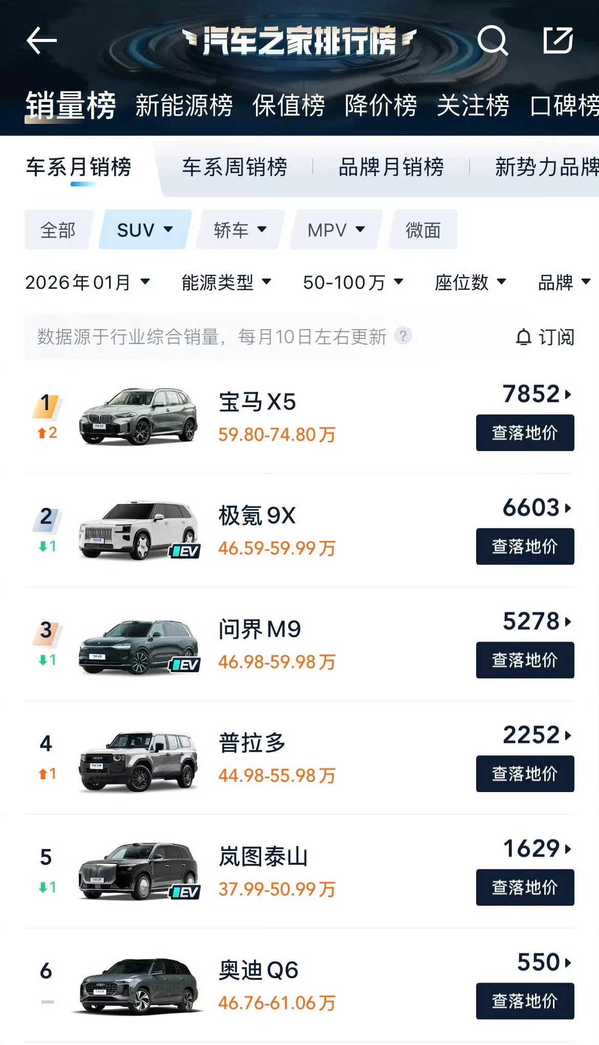 宝马x5 连续两个月蝉联50万以上级别SUV销量冠军,不愧是公路之王啊!