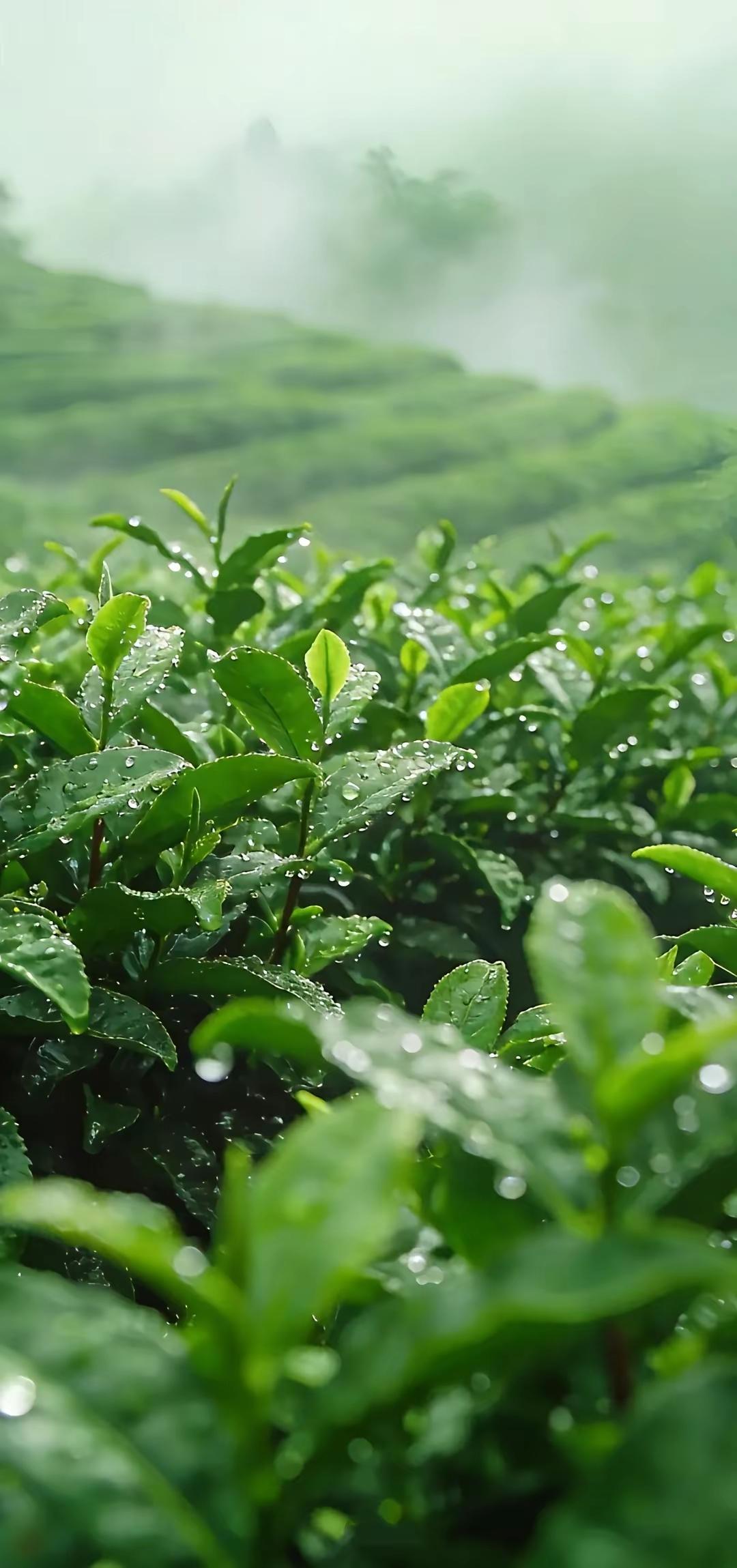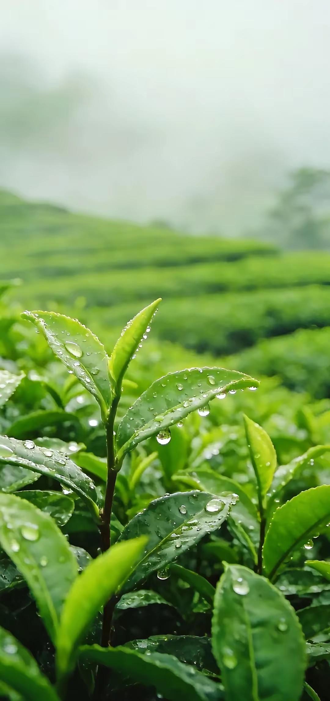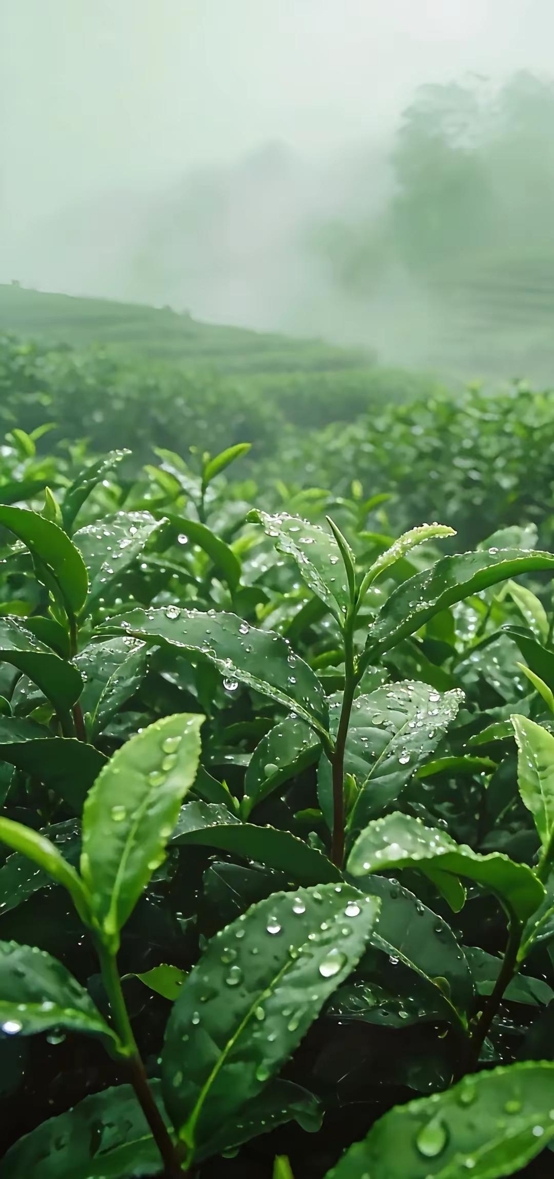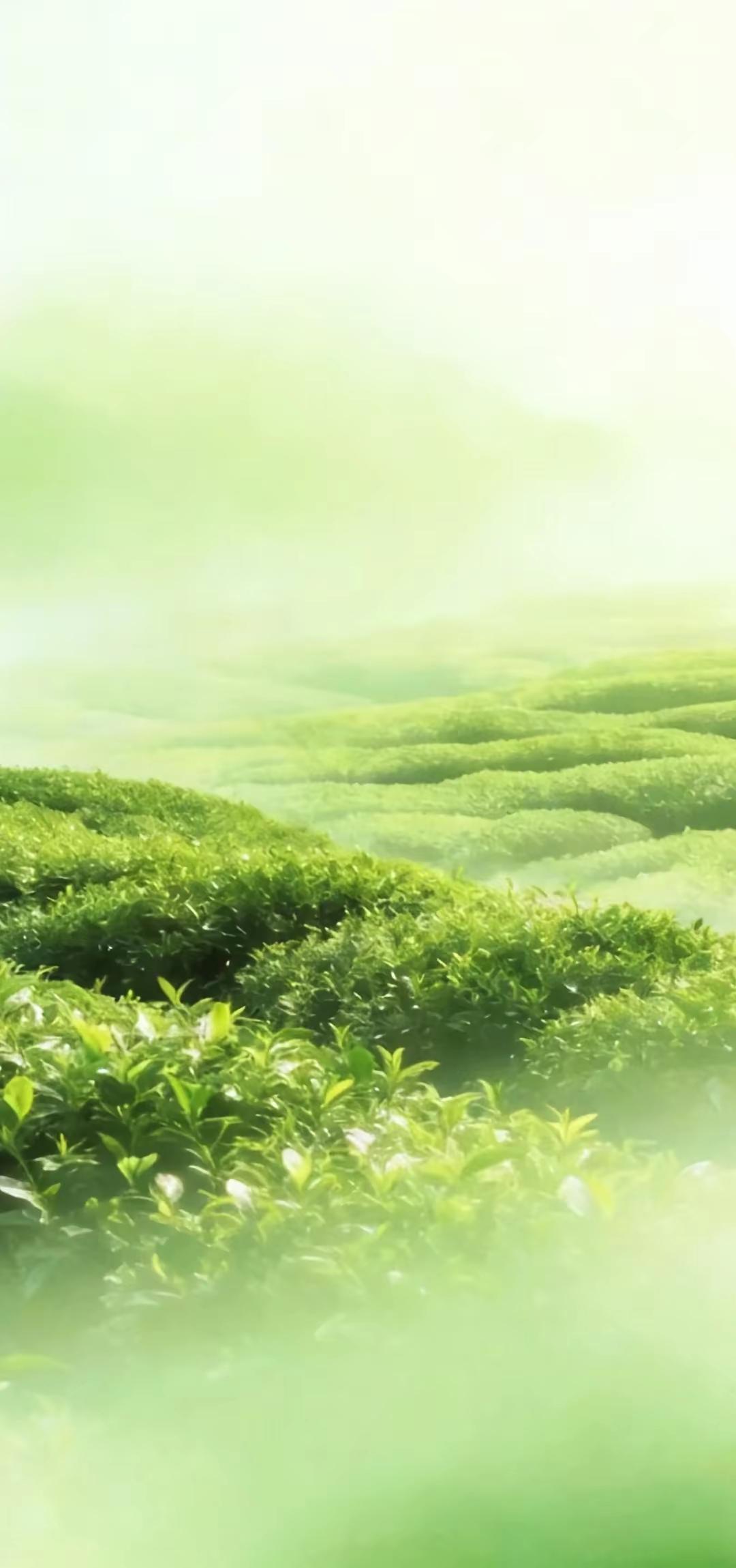 手机壁纸~晨雾漫茶山,新叶凝清露。一芽一叶皆含春,满目青绿,沁人心脾,藏着自然最纯粹的清新与温柔