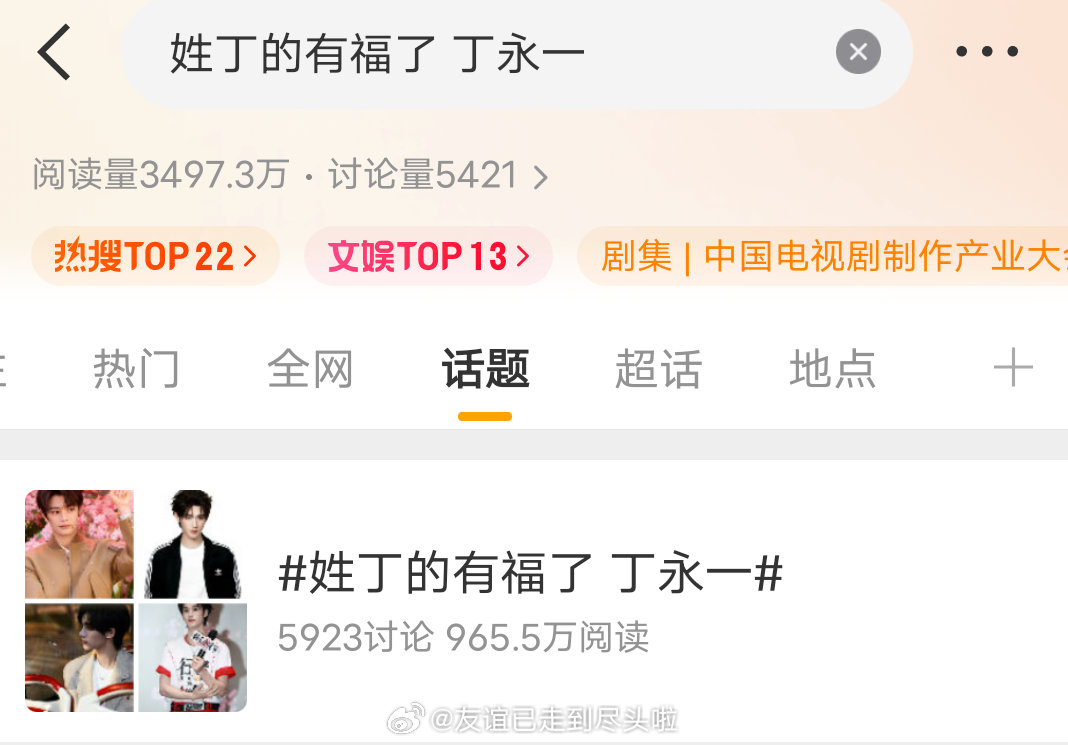 今天丁禹兮的相关热搜,全是各种羡慕他坐收姓氏笔画红利。所谓的丁永一和只要拍戏就锁定一番,否定他番位的含金量。。。姓丁的有福了 丁永一 演员原名丁禹兮以后拍戏直接就是一番了