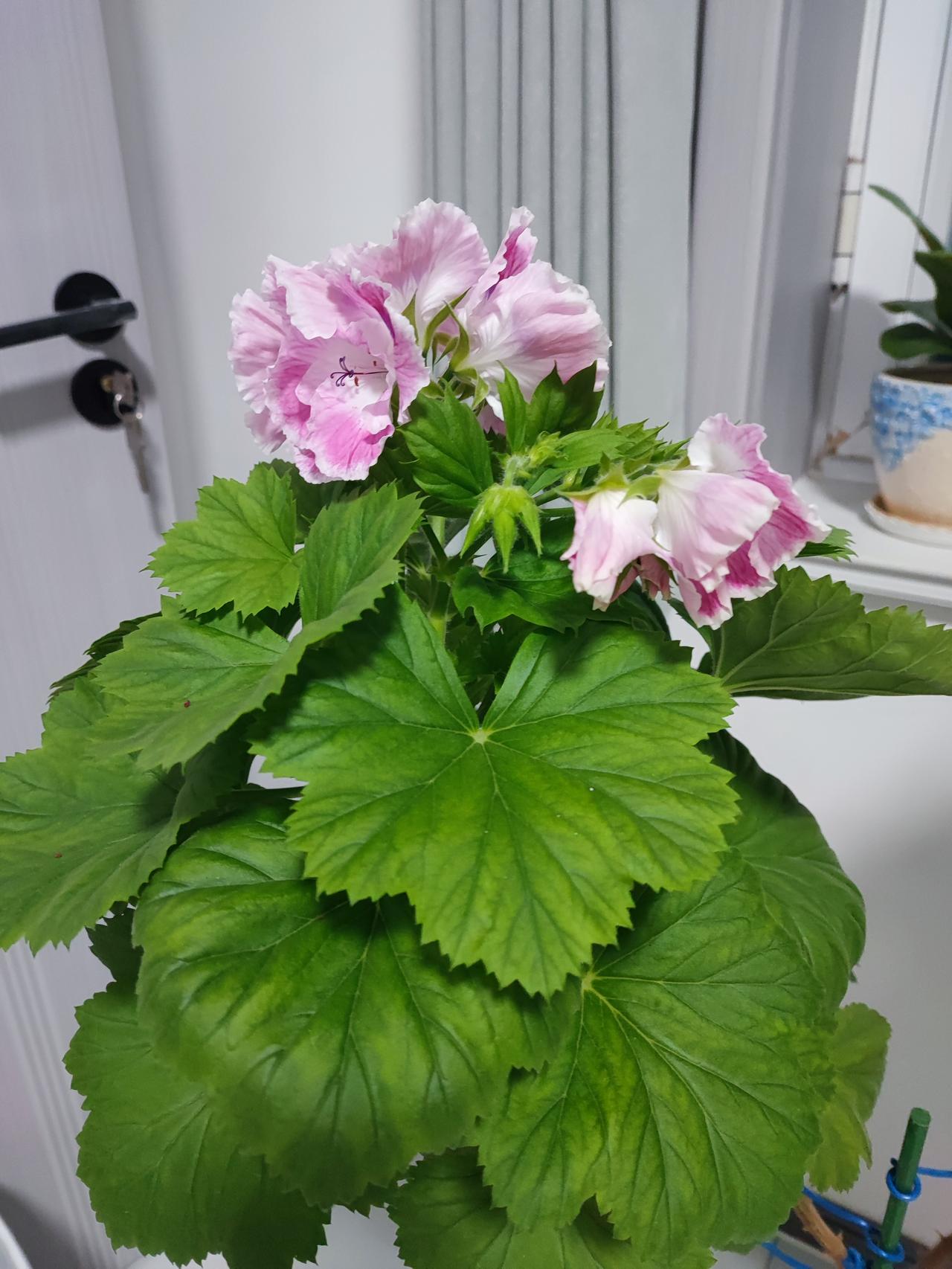 居然养出了花王! 这颗天竺葵来了很久,总也不长花骨朵,其他的前前后后都开了,它就像骄傲的公主不合群。俺老公说难道它是“公”的[捂脸],不开花。[黑线]万万没想到,过完年,它居然在顶部长满了花骨朵,而且分叉的两个枝头一样,每个枝头上都长了六簇骨朵,每簇都有五个花,妈呀,真怕它一下子都开,花枝承受不了!这是刚刚开的第一簇,颜色特水灵干净,俺老公那是天天守在旁边啧啧称赞,说自己养了个花王![我想静静]自家孩子也没见他这样上心![灵光一闪]