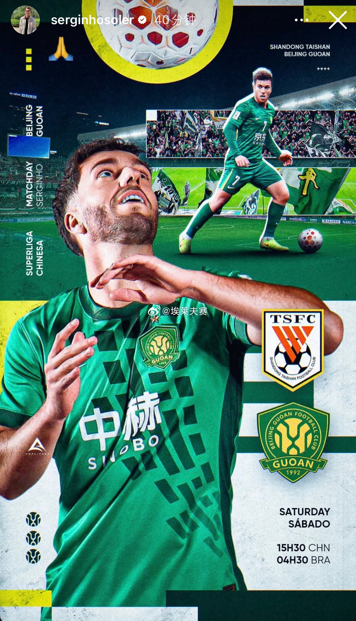 北京国安北京国安塞尔吉尼奥发布明日京鲁大战赛前海报