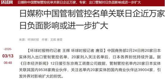 高市没想到,中国下手这么狠,上万家日企成牺牲品,称马上搬救兵 据环球时报援引日媒消息报道称,早些时候商务部将40家日企分别列入出口管制管控名单和关注名单,这一制裁对日本业内堪称“锁喉”,带给日本的连带打击正在逐步显现。 数据显示,管控名单内的20家日企,在日本国内关联了上万家商业伙伴,而关注名单则更加夸张,将近4万家企业遭殃。 中国露出的这一手,对日本军工制造企业堪称是“拔出萝卜带出泥”,打中了日本“再军事化”的七寸。 很多人可能没看透,这40家日企根本不是随机被点名。商务部的管控名单和关注名单,每一家都经过了精准筛选,全是日本军工体系里的关键角色。 管控名单里的20家企业,包括三菱造船、川崎重工等巨头,它们长期负责日本自卫队主力装备的研发和生产。这些企业的业务直接关联日本“再军事化”的推进,中方的措施就是明确禁止向它们出口两用物项,正在开展的相关合作也必须立即停止。 关注名单里的20家企业,像斯巴鲁、TDK这些,看着有些是做民用产品的,但它们的产品存在军民两用属性,且中方无法核实这些产品的最终用户和用途。 所以中方对它们采取了更严格的审核,出口相关物项时不能申请通用许可,就算申请单项许可,也要提交风险评估报告和书面承诺,确保不会用于提升日本军事实力。 东京商工调查公司给出的数据很直观,管控名单的20家日企,在日本国内关联着9538家商业伙伴。关注名单的20家更夸张,牵连的企业足足有39004家。这近5万家企业,现在都陷入了困境。 这些被牵连的企业,大多是为40家核心企业提供零部件、原材料供应,或是负责物流、售后等配套服务。中方切断核心企业的两用物项供应后,这些配套企业的订单直接被砍,生产线只能被迫放缓甚至暂停。 可能有人会问,日本不能找其他国家替代供应吗?答案是很难。日本军工生产所需的稀土永磁材料、高纯度石英、特种气体等两用物项,中国在全球供应链中占据主导地位。 日本进口的稀土,有七成以上来自中国,其中制造导弹、战机所需的高性能重稀土,几乎完全依赖中国。就算日本想转向欧美采购,不仅价格会翻倍,交货周期也会拉长到半年以上,部分材料的性能还未必达标。 更关键的是,这些两用物项的生产涉及复杂的工艺链,比如稀土分离提纯,需要大量专业设备和环保设施,日本想在本土重建产能,至少需要五年时间。短期内,它们根本找不到合适的替代渠道。 这也是中国出手的核心逻辑,不是要全面打压日本经济,而是精准针对日本“再军事化”的关键环节。近年来,高市早苗政府一直在加速推进“再军事化”,不仅大幅增加防卫预算,还公开炒作“台湾有事就是日本有事”,甚至试图动摇“无核三原则”。 中方此前已经多次提出严正交涉,但高市早苗政府丝毫没有收敛,反而不断升级挑衅动作。此次出口管制,就是中方给出的明确回应,用合法合规的方式,制止日本的“再军事化”和拥核企图。 高市早苗得知消息后,反应十分激烈。她在参院质询中公开表示,绝对无法容许中方的这一措施,还向中方提出了强烈抗议。但抗议没有任何效果,中方的立场十分坚定,相关措施已经正式生效。 眼看上万家日企陷入困境,自身政治压力越来越大,高市早苗开始想办法搬救兵。她已经计划在3月19日访问美国,试图说服特朗普政府在对华政策上保持强硬,还想争取加入美国的“金穹”导弹防御系统。 可高市早苗大概率是找错了人。特朗普政府近期刚宣布,对包括日本在内的16个贸易伙伴启动“301调查”,未来很可能会加征关税。就算高市早苗能见到特朗普,对方也未必会真心帮她,毕竟“美国优先”才是特朗普的核心原则。 日本国内现在已经出现了反对声音,不少民众抗议高市早苗的强硬路线,认为她的轻率言论和政策,让日本经济陷入了困境。很多被牵连的企业经营者,也在抱怨政府的决策,让他们蒙受了巨大损失。 中方早就明确表态,此次措施仅针对少数参与日本“再军事化”的实体,不影响中日正常经贸往来,诚信守法的日本实体完全无需担心。说白了,中国的出手,从来都是被迫反击,底线就是不能让日本的“再军事化”,威胁到地区和平与中国的核心利益。 高市早苗要是继续执迷不悟,不纠正自己的错误政策,就算搬来救兵,也解决不了根本问题。上万家日企的困境,终究是她自己的战略误判造成的,这笔代价,只能由日本自己承担。