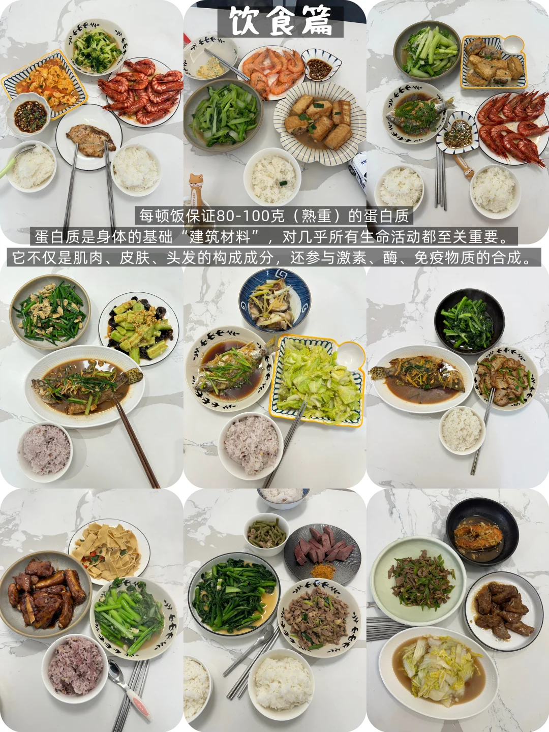 基本都是家常菜,一日三餐也没有饿肚子,主要是少油、少盐、戒糖!