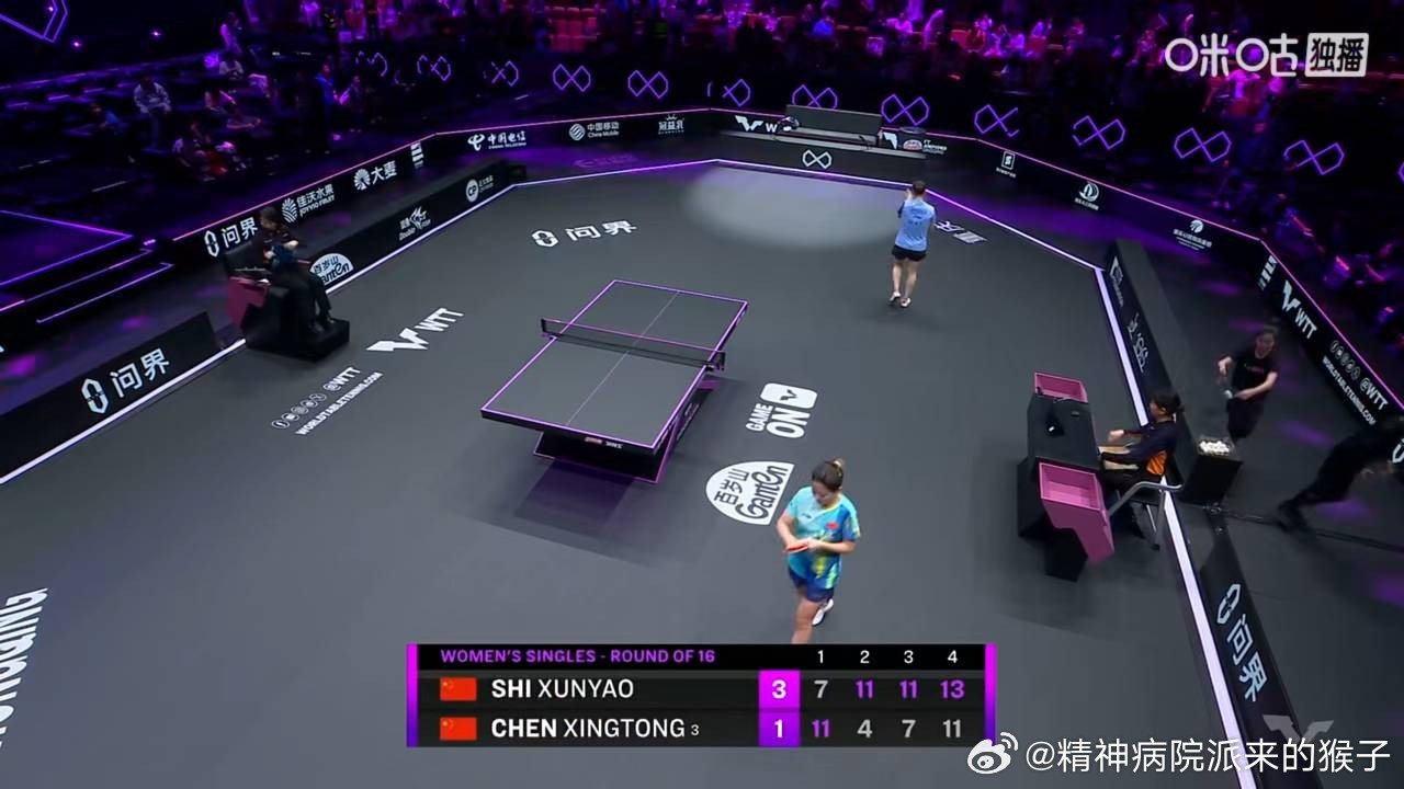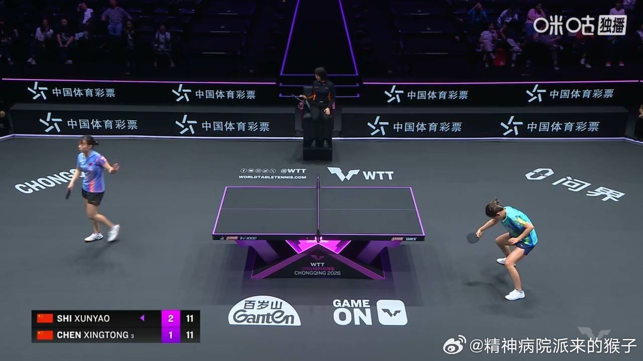 石洵瑶3比1陈幸同(-7,4,7,11)晋级2026WTT重庆冠军赛女单八强下一