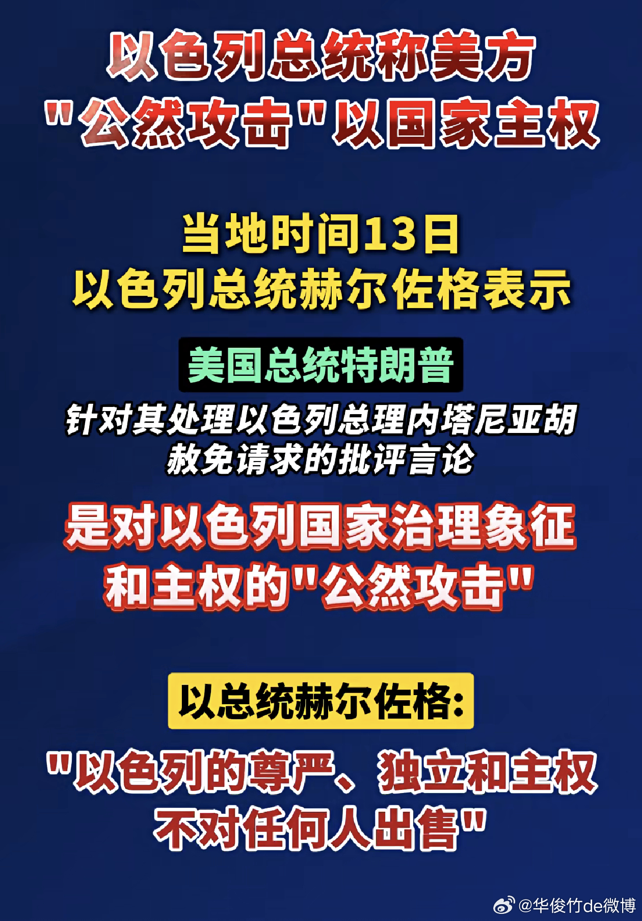 以色列总统称特朗普攻击国家主权 以色列还有总统呢?我一直以为只有总理!